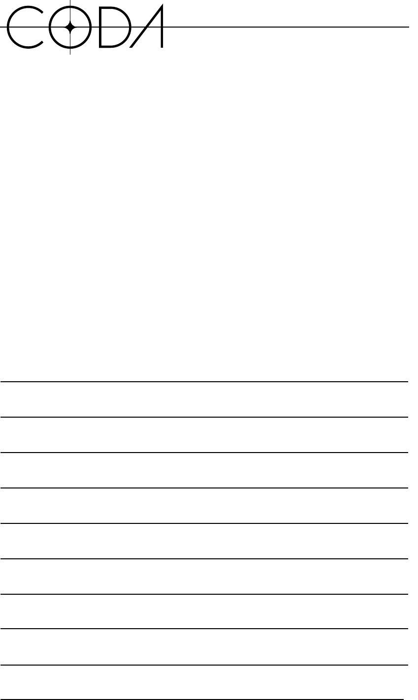 Please fill in and send this copy of the warranty registration sheet to Coda Technologies,