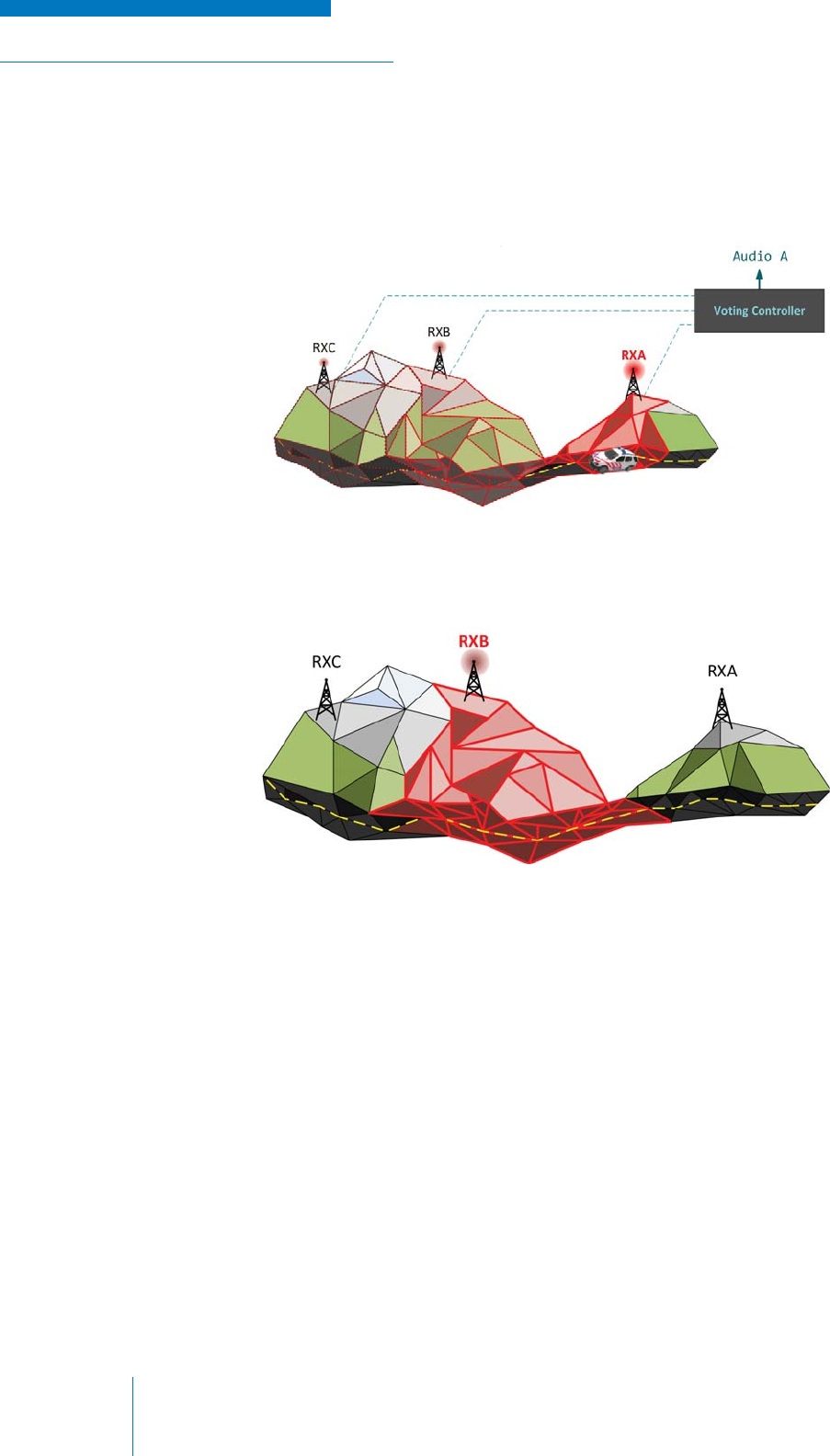 coverage areas, linked together via IP backhaul communications. Voting and/or Simulcast