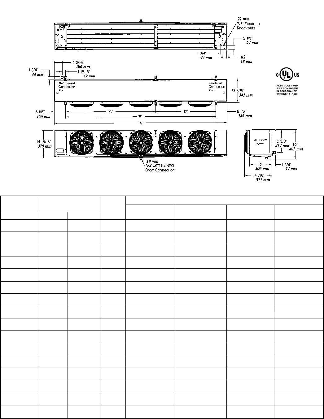 ADT Air Defrost Models 60 Hz. with Shaded Pole Motors