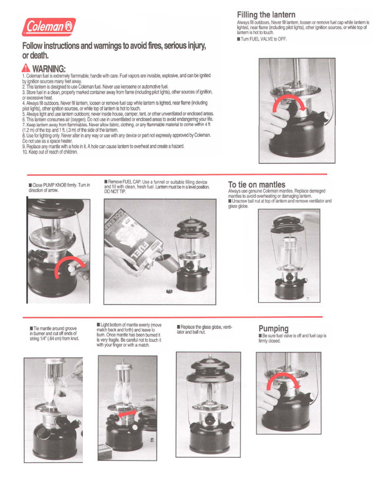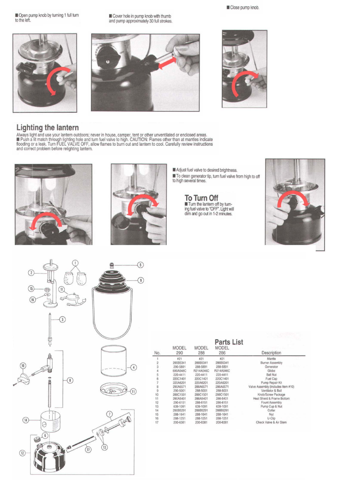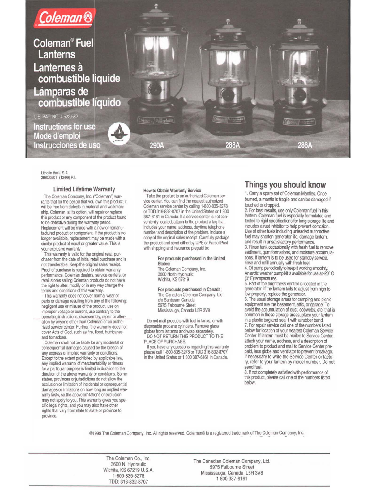 Coleman 286A Users Manual 290A/288A/286A Series Fuel Lanterns