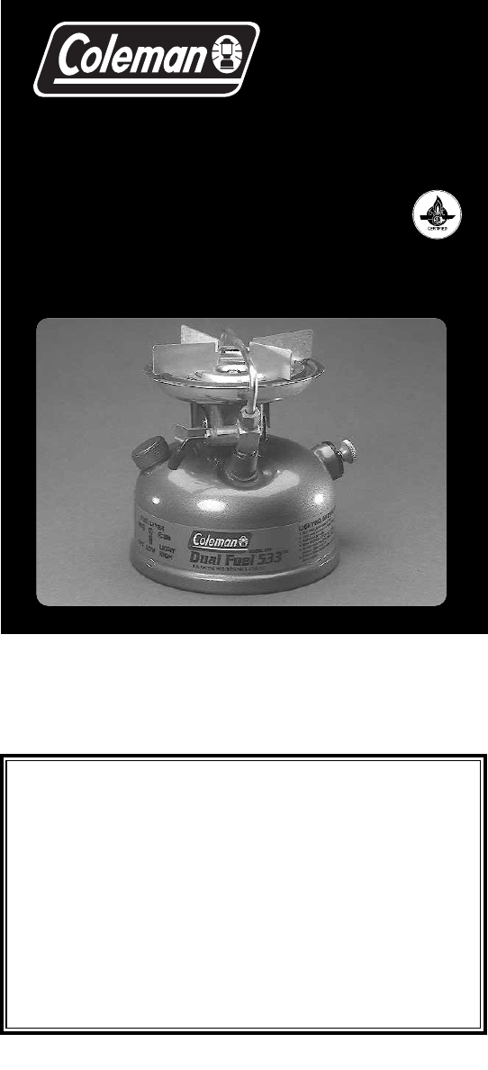 Coleman 533 Series Users Manual Sportster II Dual Fuel Stove
