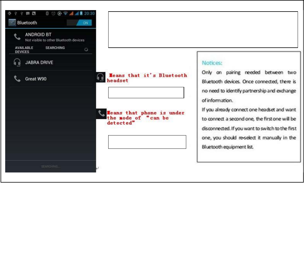 for all devices within range. Touch Bluetooth settings, all the devices founded will display in the list under the icon. (select the box “can be