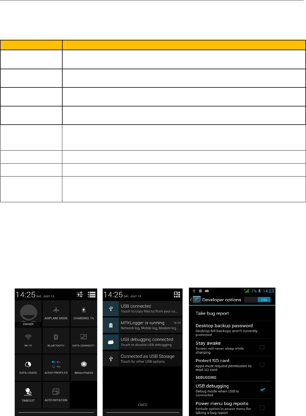 power • Press it to open the phone’s menu,then you could choose to lock the screen、turn off the phone,or set it to the