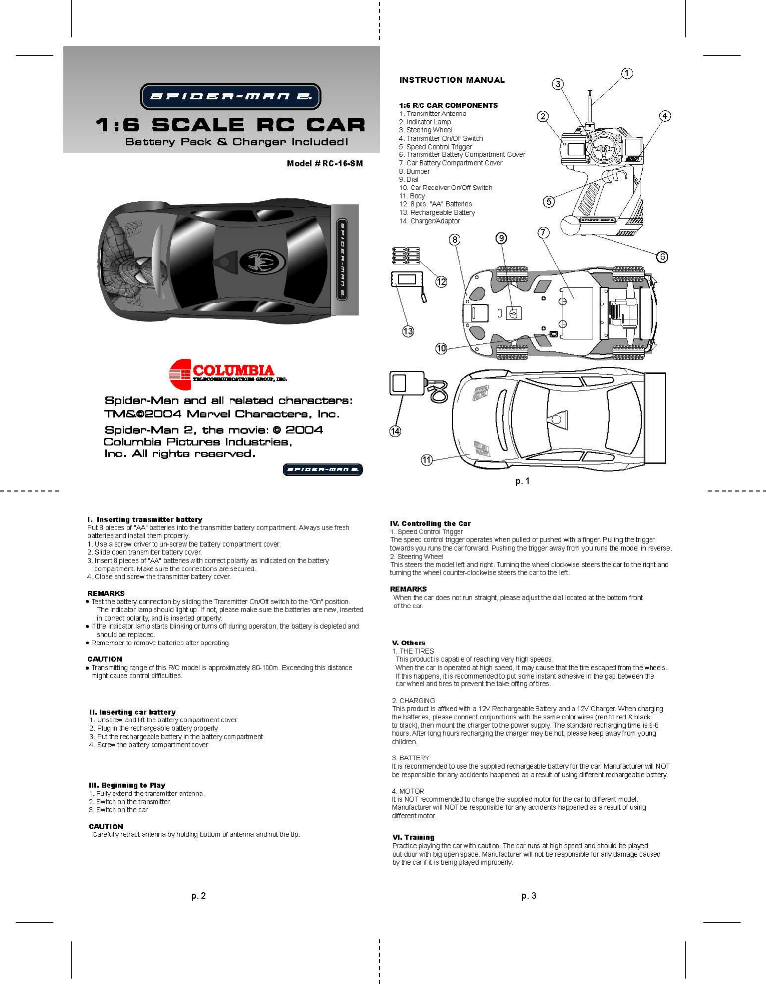 Columbia Telecommunications Group RC16SM27 Remote Control Toy Transmitter User Manual