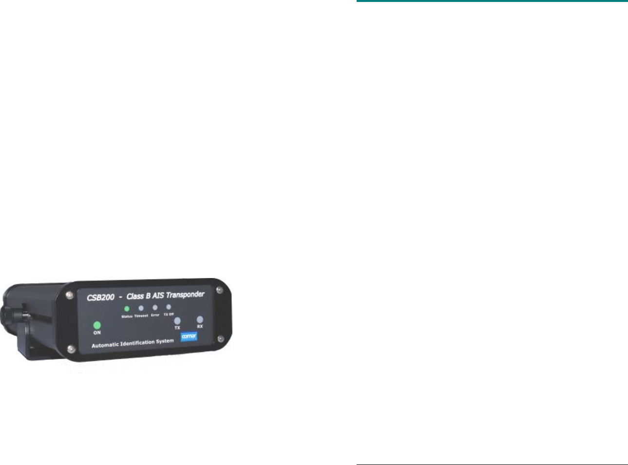 Comar Systems CSB200 Class B AIS Transponder User Manual CSB200 R3 1