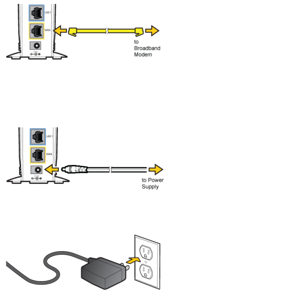 3. Connect one end of the yellow Ethernet cable to an available LAN port on your broadband