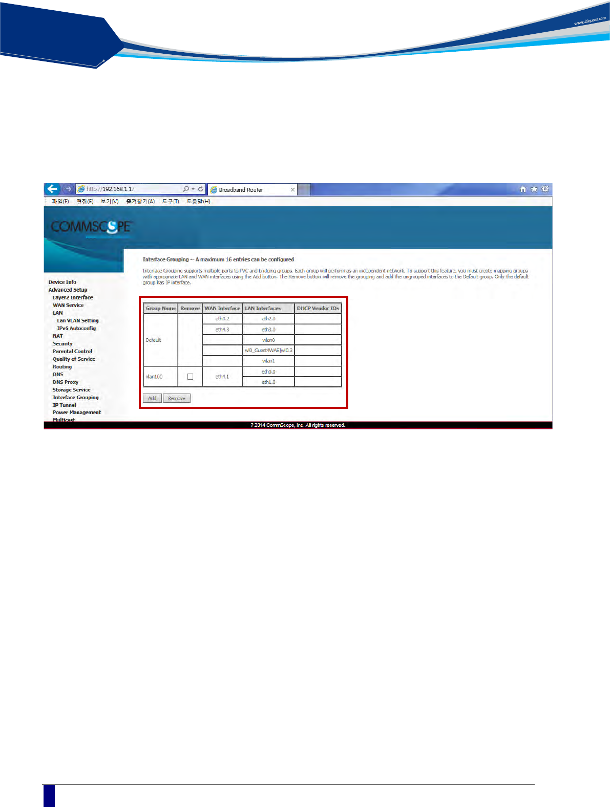 Advanced Setup / Interface Grouping .......................................................................... 22