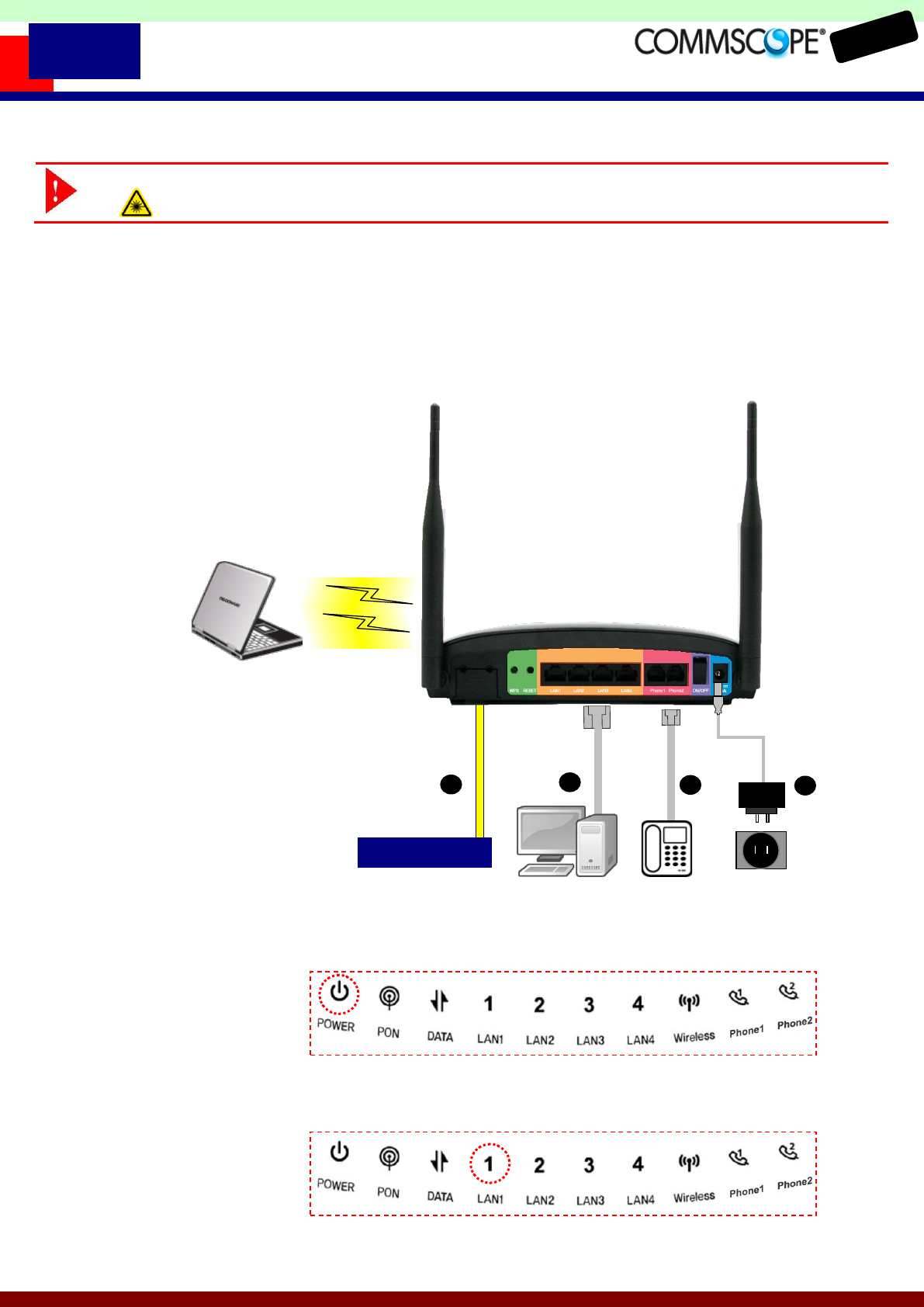CommScope of North Carolina ONU-1-3-105-D GE-PON ONT, 802.11 b/g/n Wireless Router User Manual
