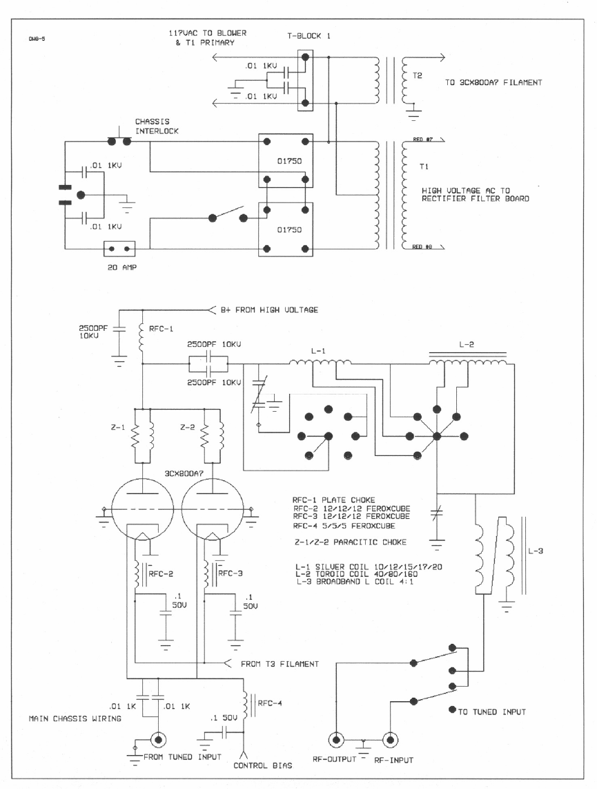 DC to the 3CPX800-A7 anode. Metering of the tube anode and grid