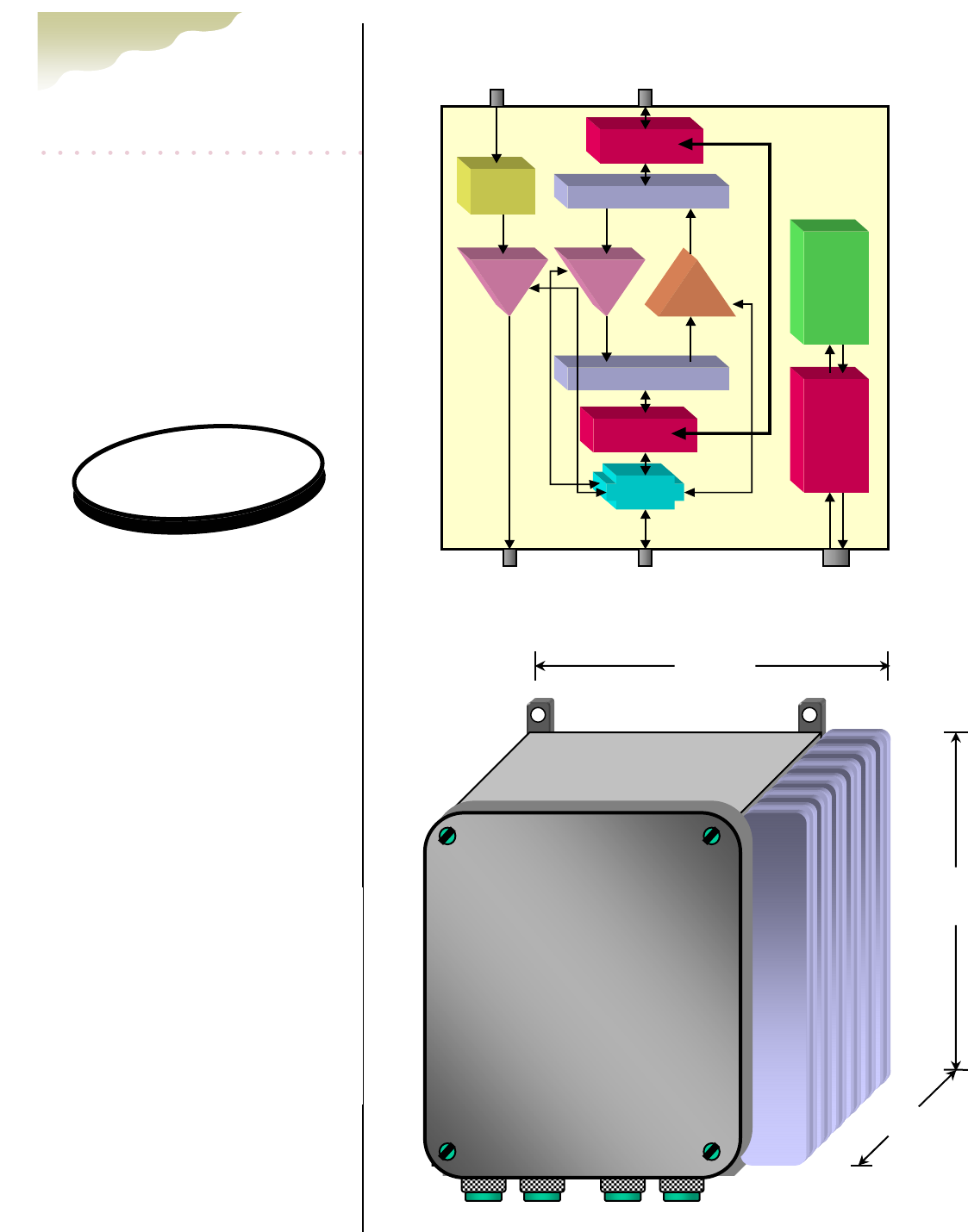 an integrated power supply and alarm/control circuitry to monitor the operation of the unit. The