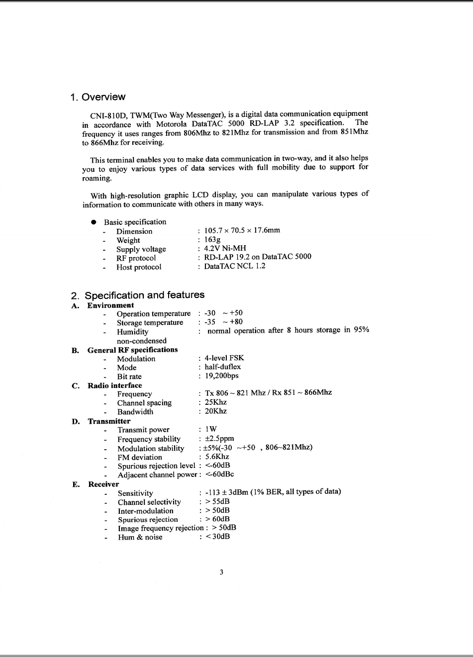 Communication Network Interface CNI-810D Two way pager User Manual Manul