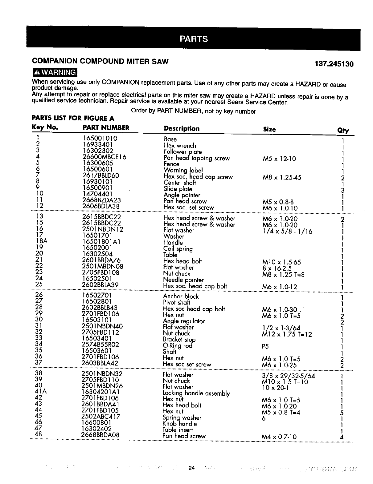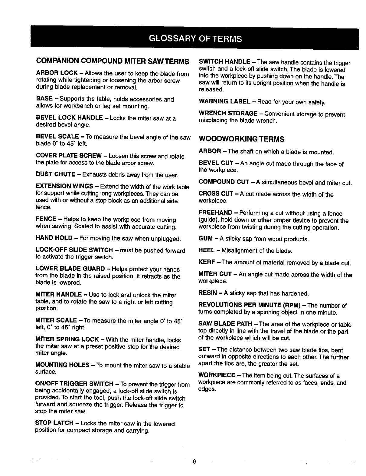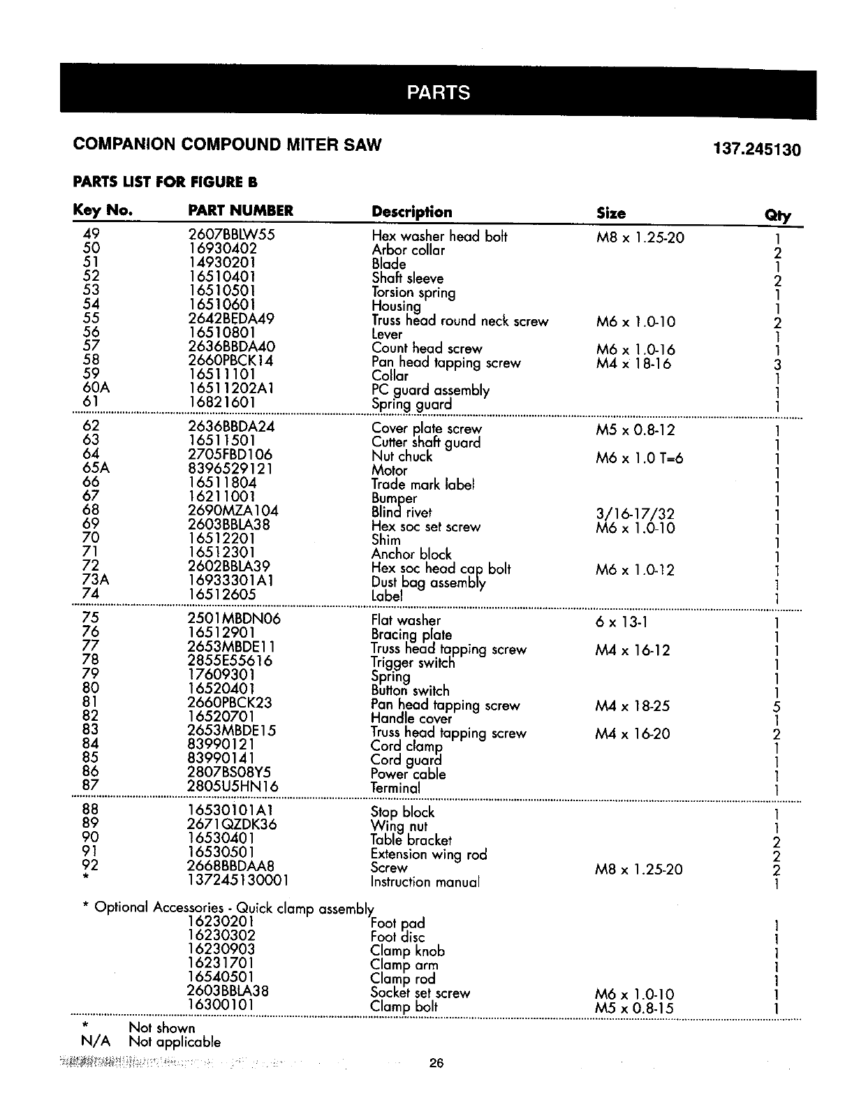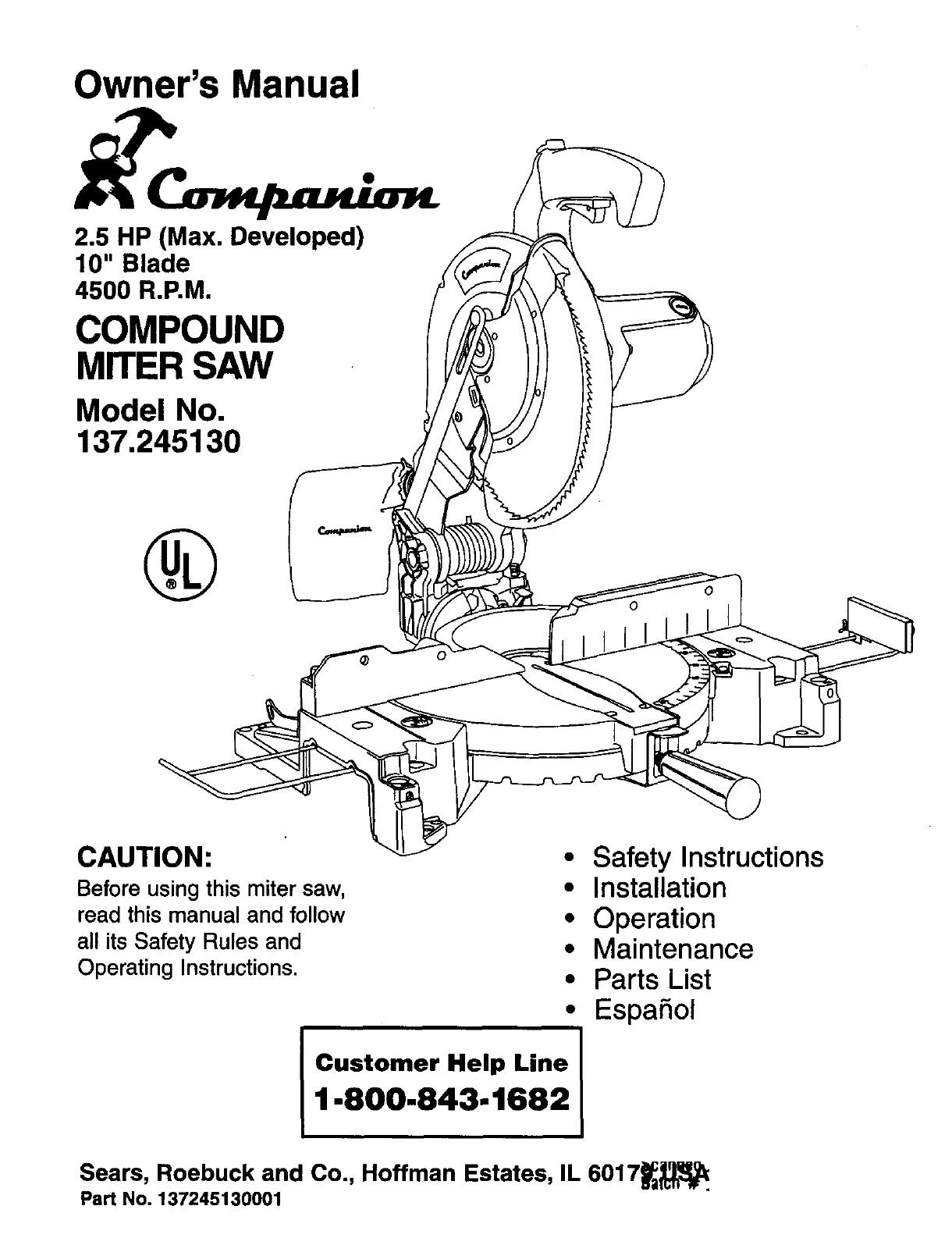 User Manual: Companion 137245130 137245130 COMPANION 2.5 HP 10 BLADE COMPOUND MITER SAW - Manuals and Guides View the owners manual for your COMPANION 2.5 HP 10 BLADE COMPOUND MITER SAW #137245130. Home:Tool Parts:Companion Parts:Companion 2.5 HP 10 BLADE COMPOUND MITER SAW Manual