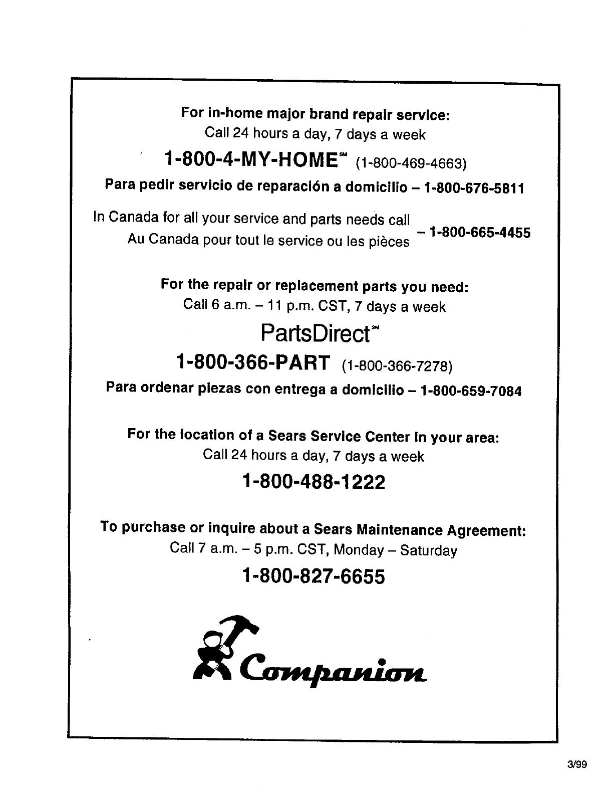In Canada for all your service and parts needs call - 1-800-665-4455