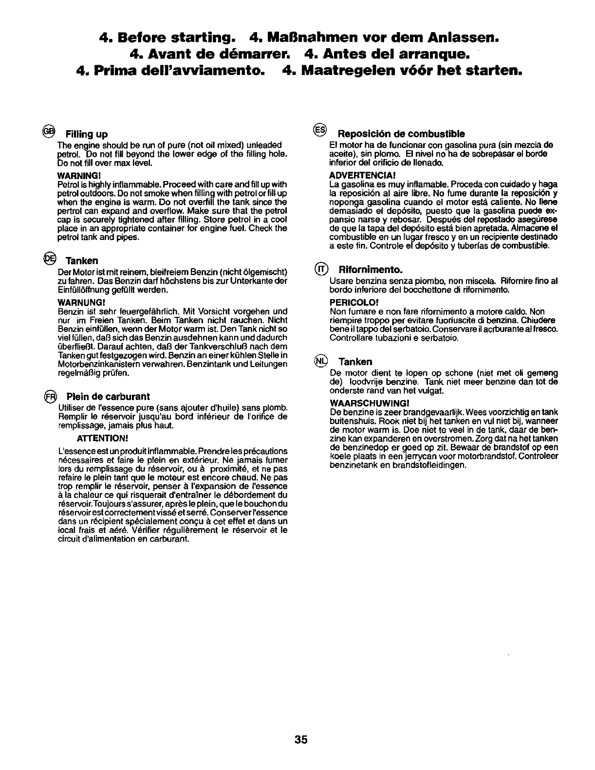 Maatregelen v66r het starten.. 35
