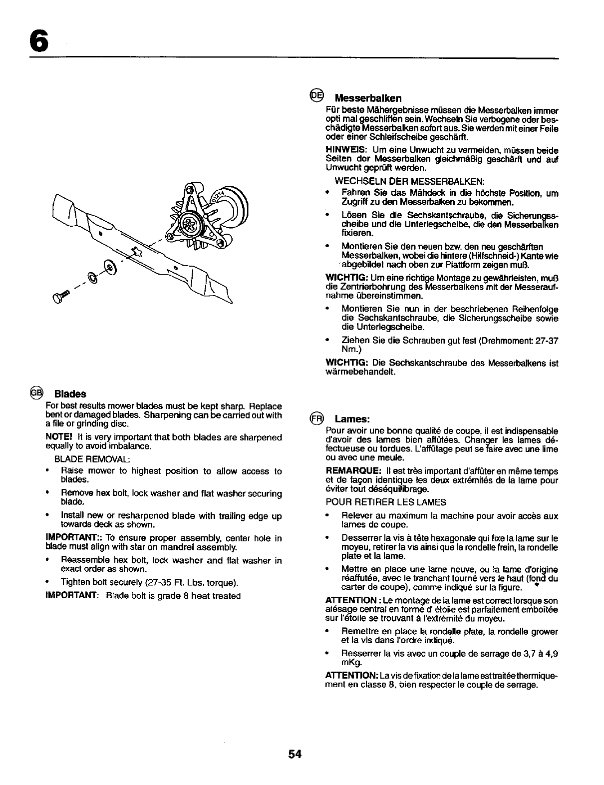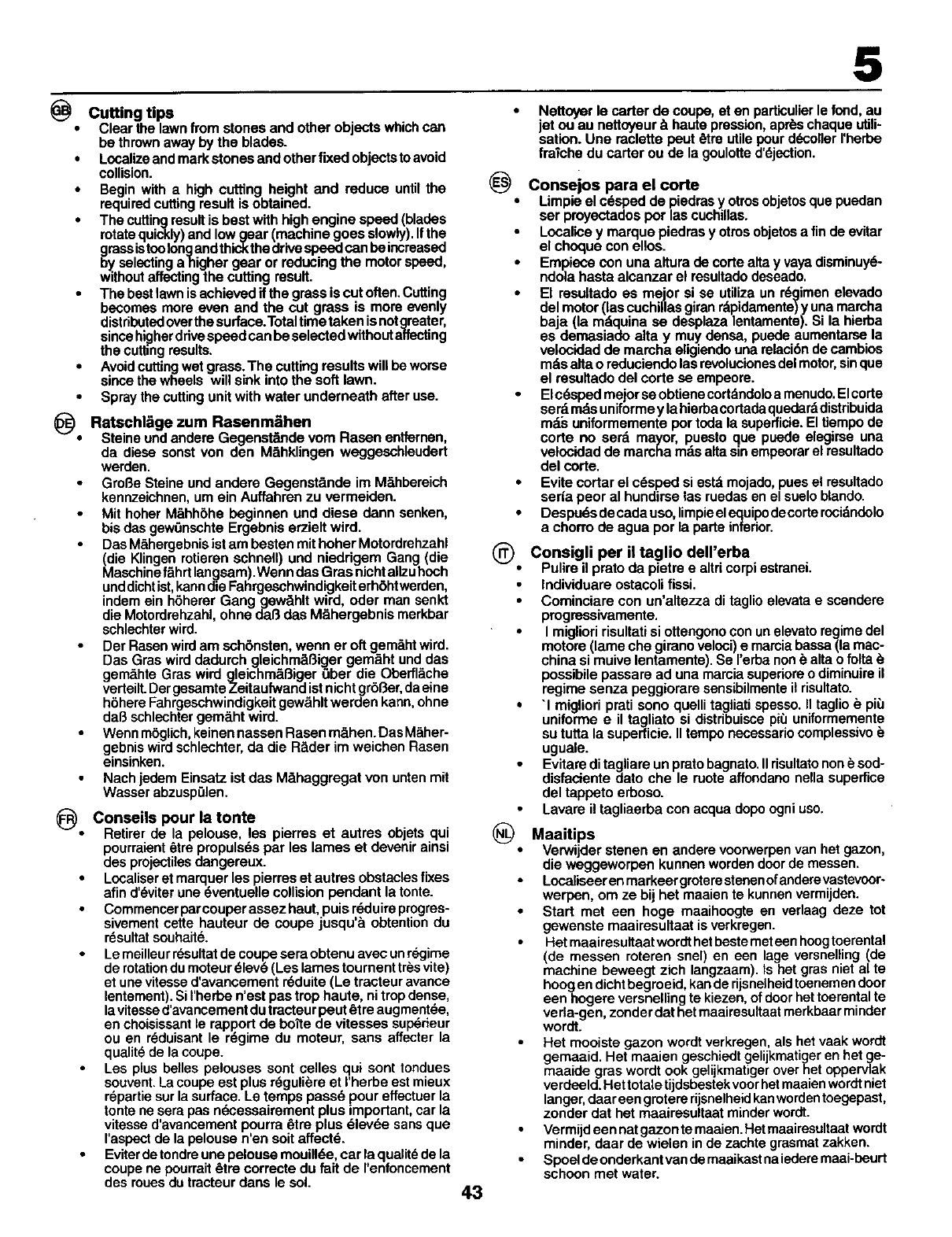 •Catdgode ............... Tondeuse rotafive • Niveau de puissance