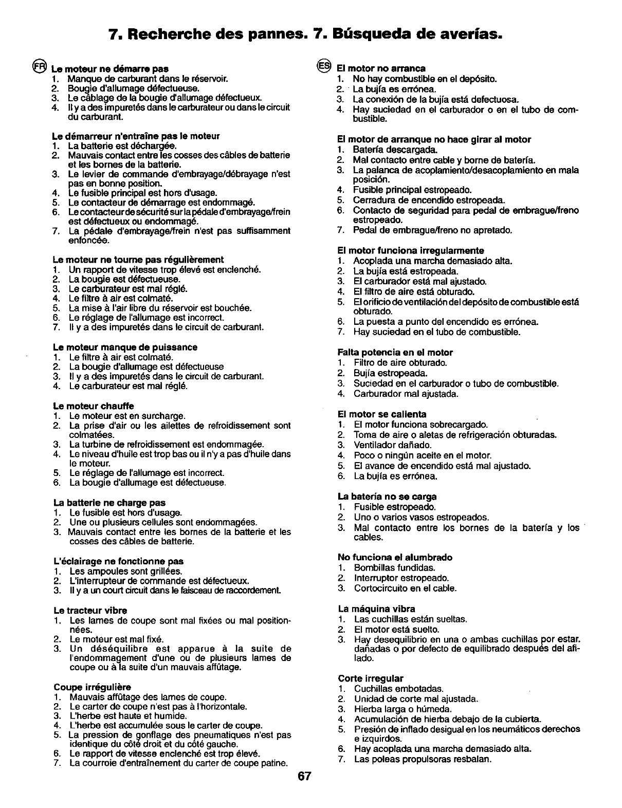 Recherche des pannes.