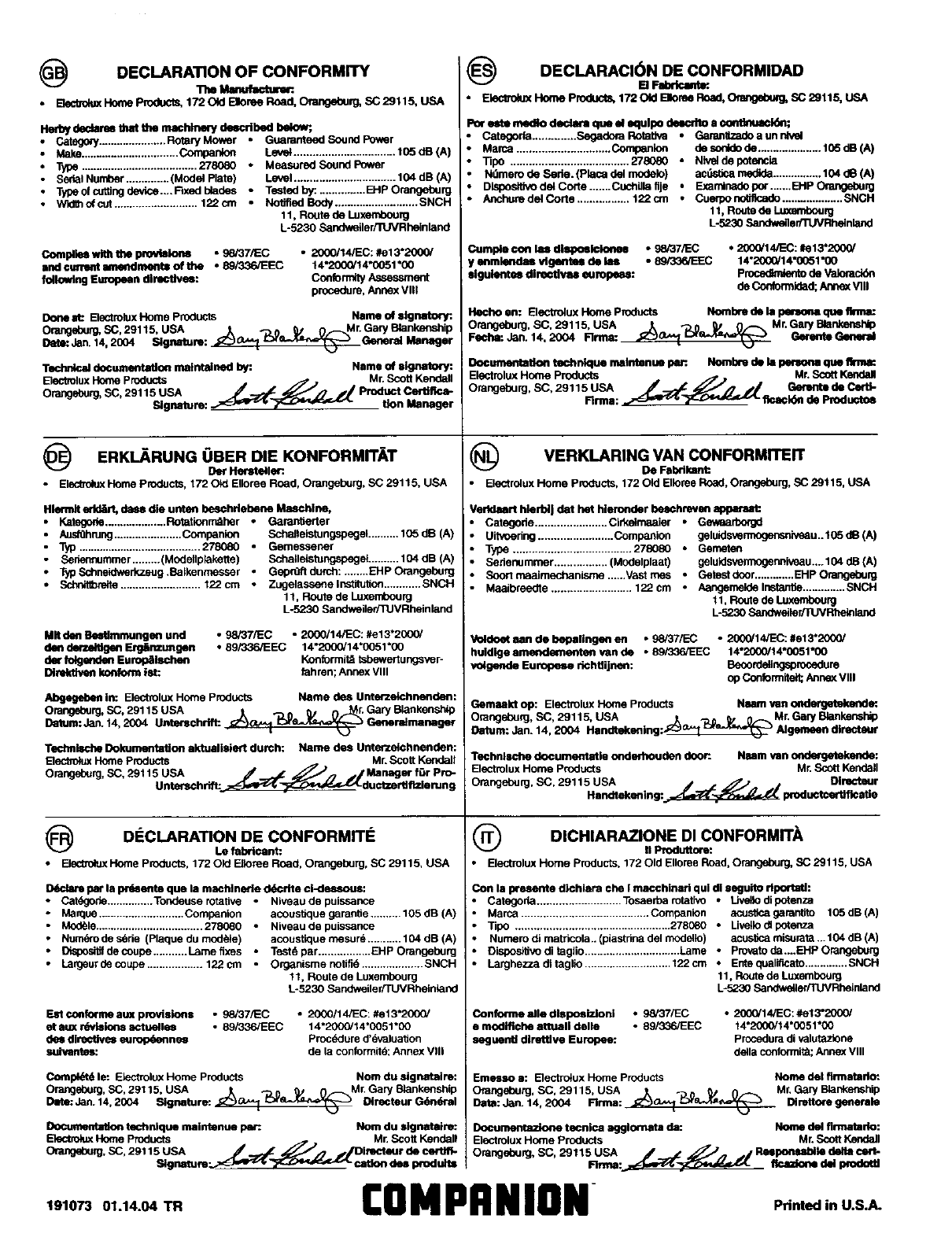 COMPANION Lawn, Tractor Manual L0401398 COMPANION Lawn, Tractor Owner's Manual, COMPANION Lawn, Tractor installation guides