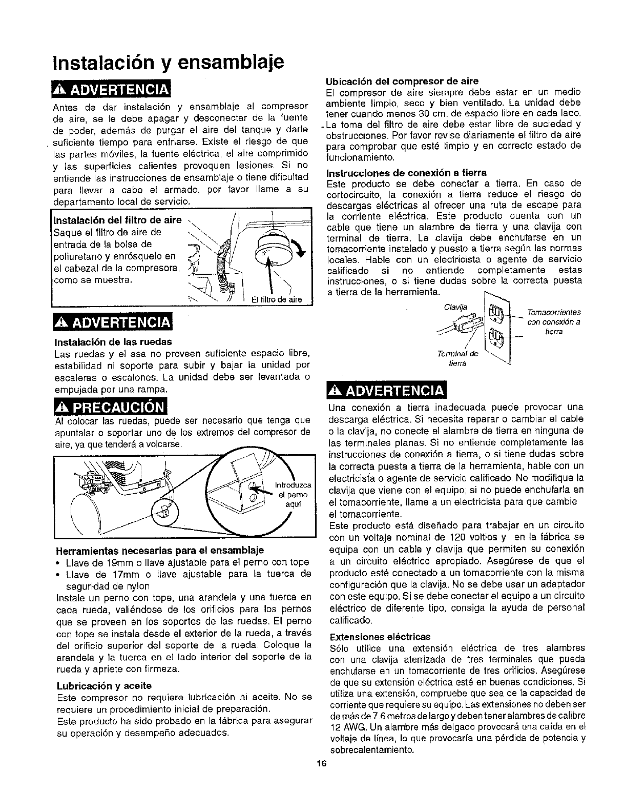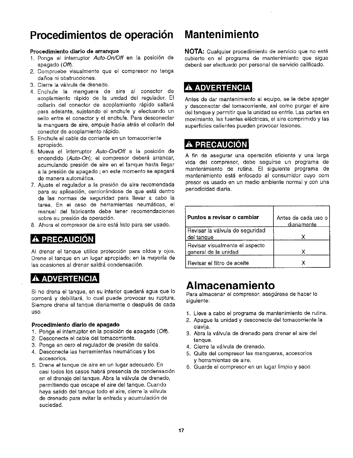 Para almacenar el compresor, aseg,',rese de hacer Io