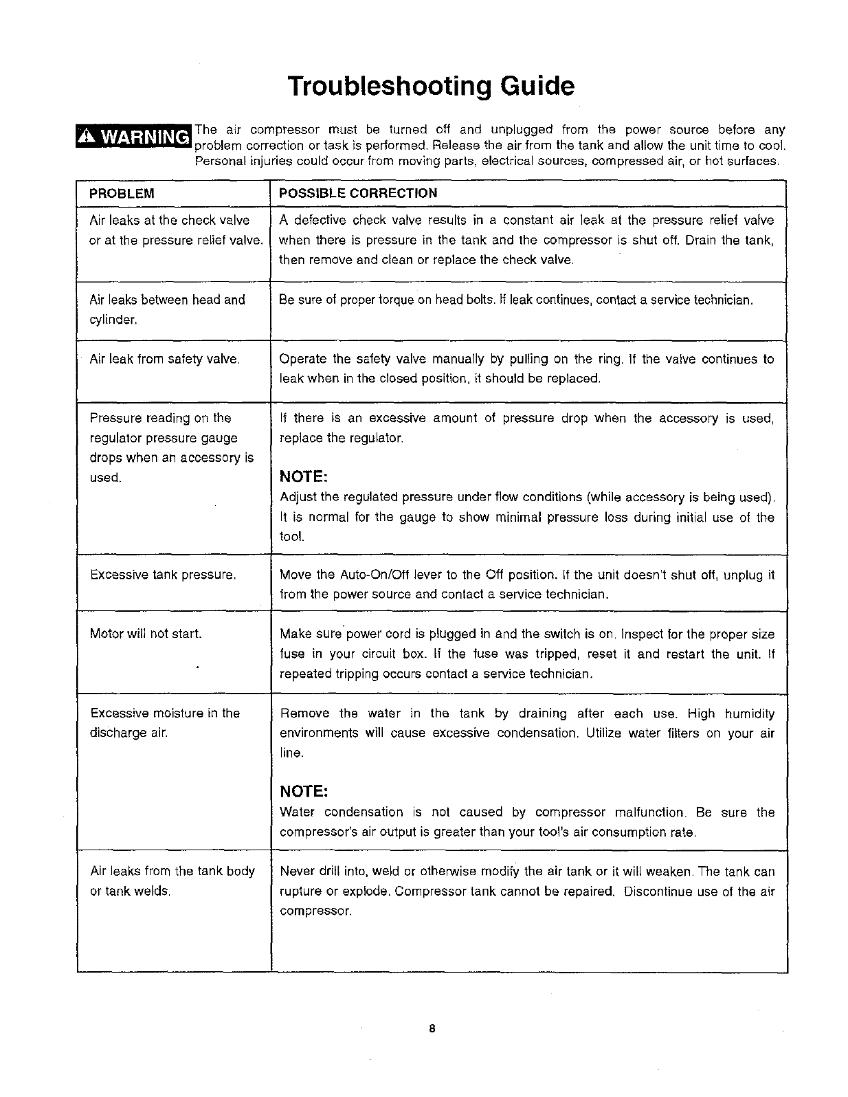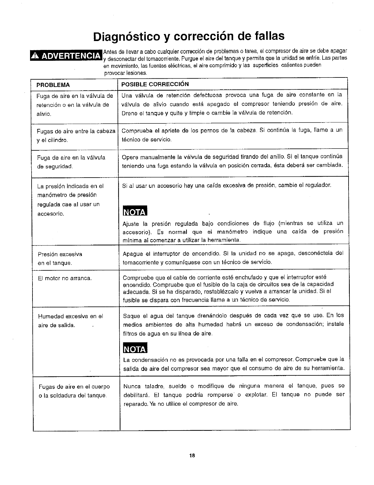 !uiercorrecci6nde problemaso tare& el compresorde aire se debe apagar