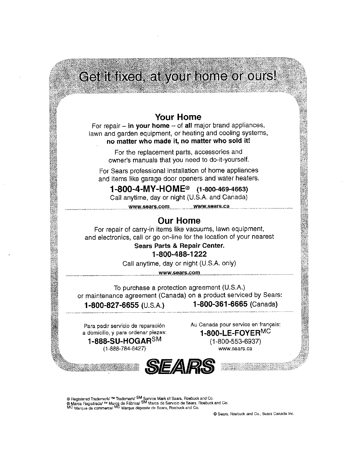 ® Registered Trademark/TM Traderr_rk/SM Service Mark of Sears, Roebuck and Co.