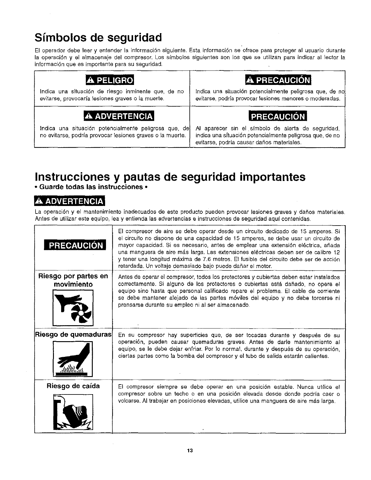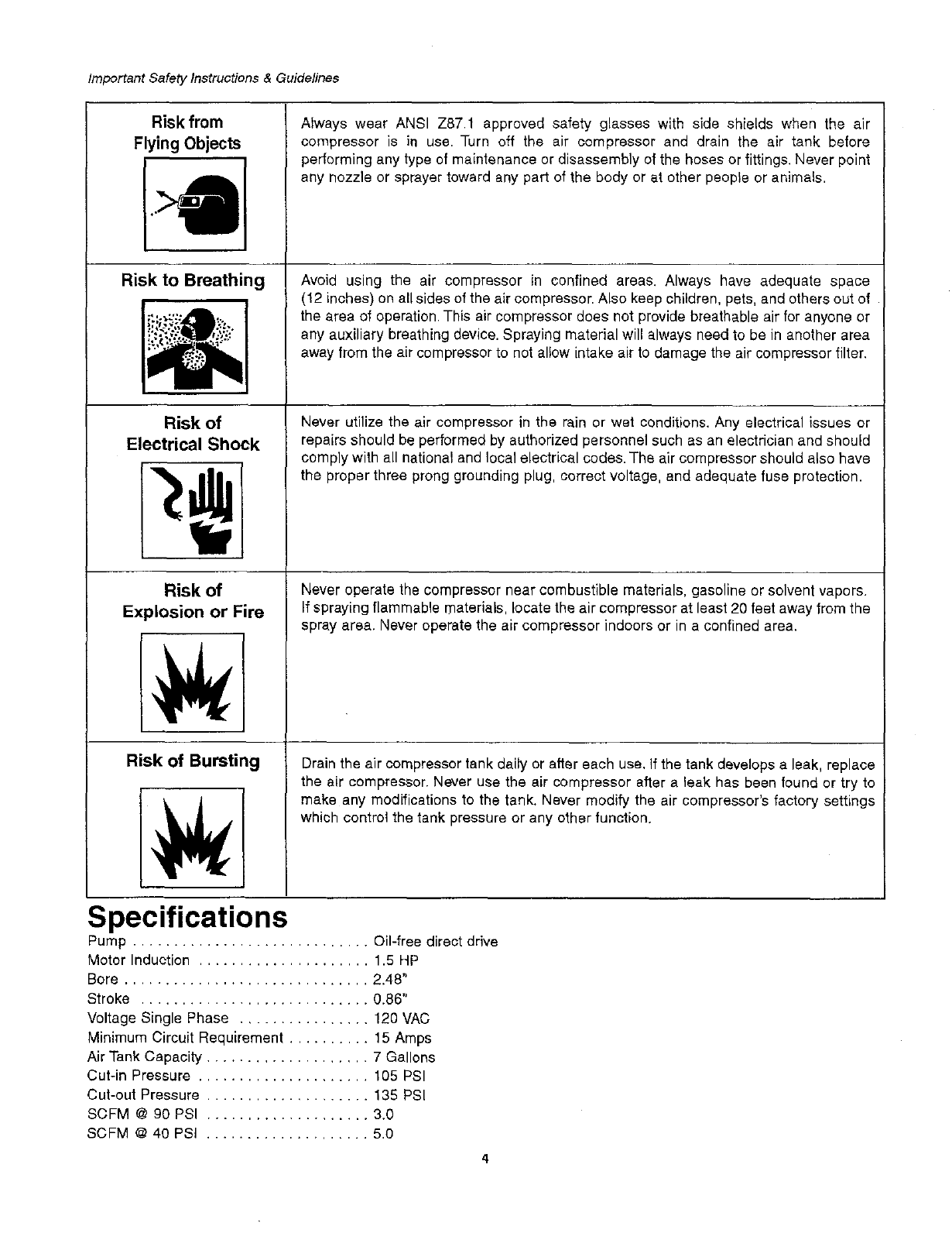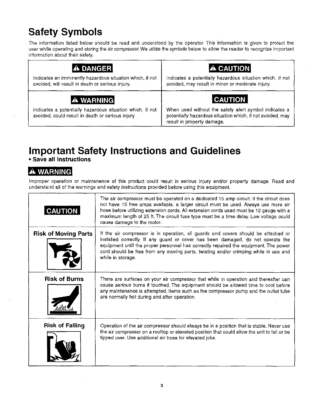 user while operating and storing the air compressor, We utilize the symbols below to allow the reader to recognize important