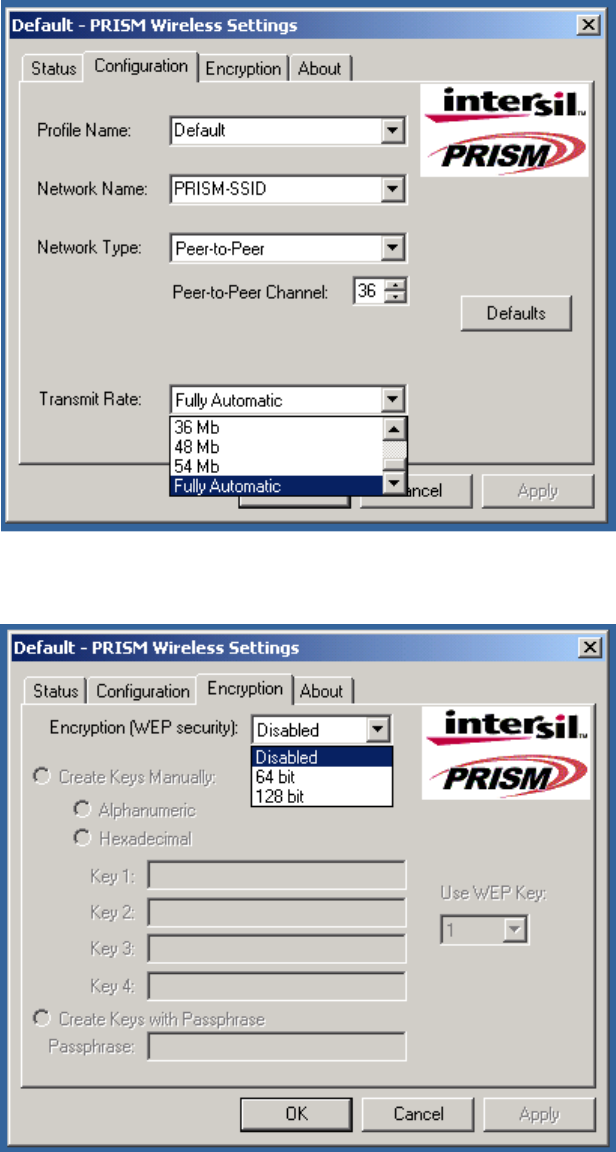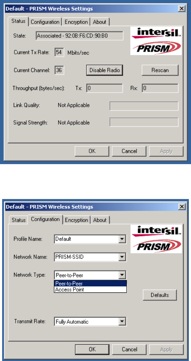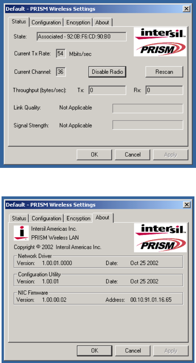 e-double click the Intersil WLAN icon to open the WLAN settings, the following window will appear