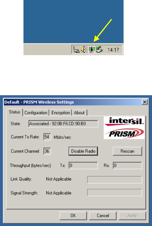 d-the Intersil WLAN icon will appear in system tray on the bottom right of the screen (see yellow