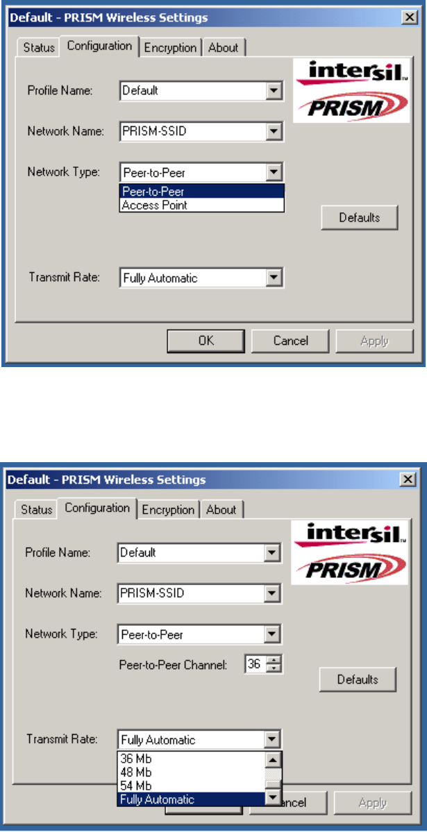 f-click on configuration tab and select which type of network is required (access point or Peer-to-peer