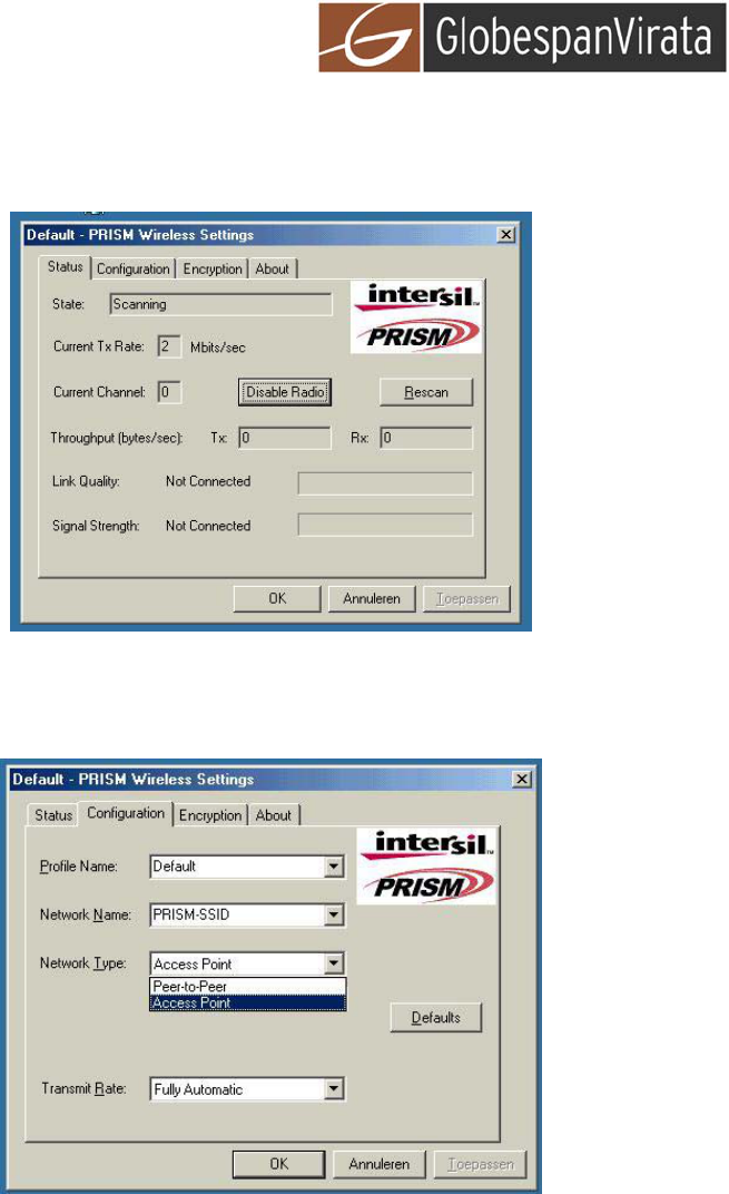 e-double click the GlobespanVirata WLAN icon to open the WLAN settings, the following window