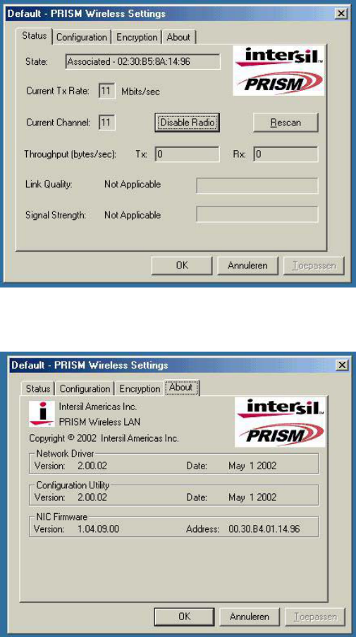 e-double click the GlobespanVirata WLAN icon to open the WLAN settings, the following window