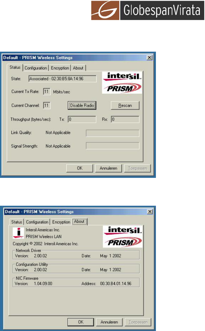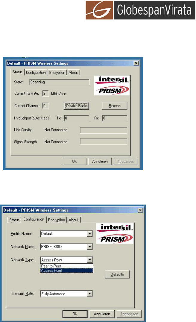 e-double click the GlobespanVirata WLAN icon to open the WLAN settings, the following window