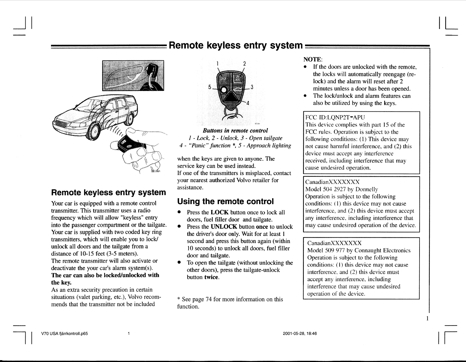 Connaught Electronics Ltd Remote Keyless Entry System Users Manual