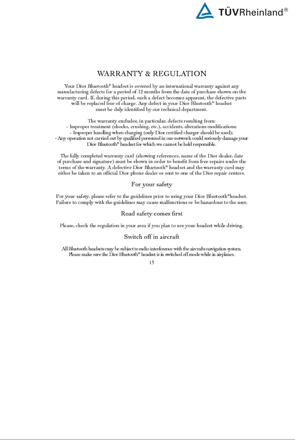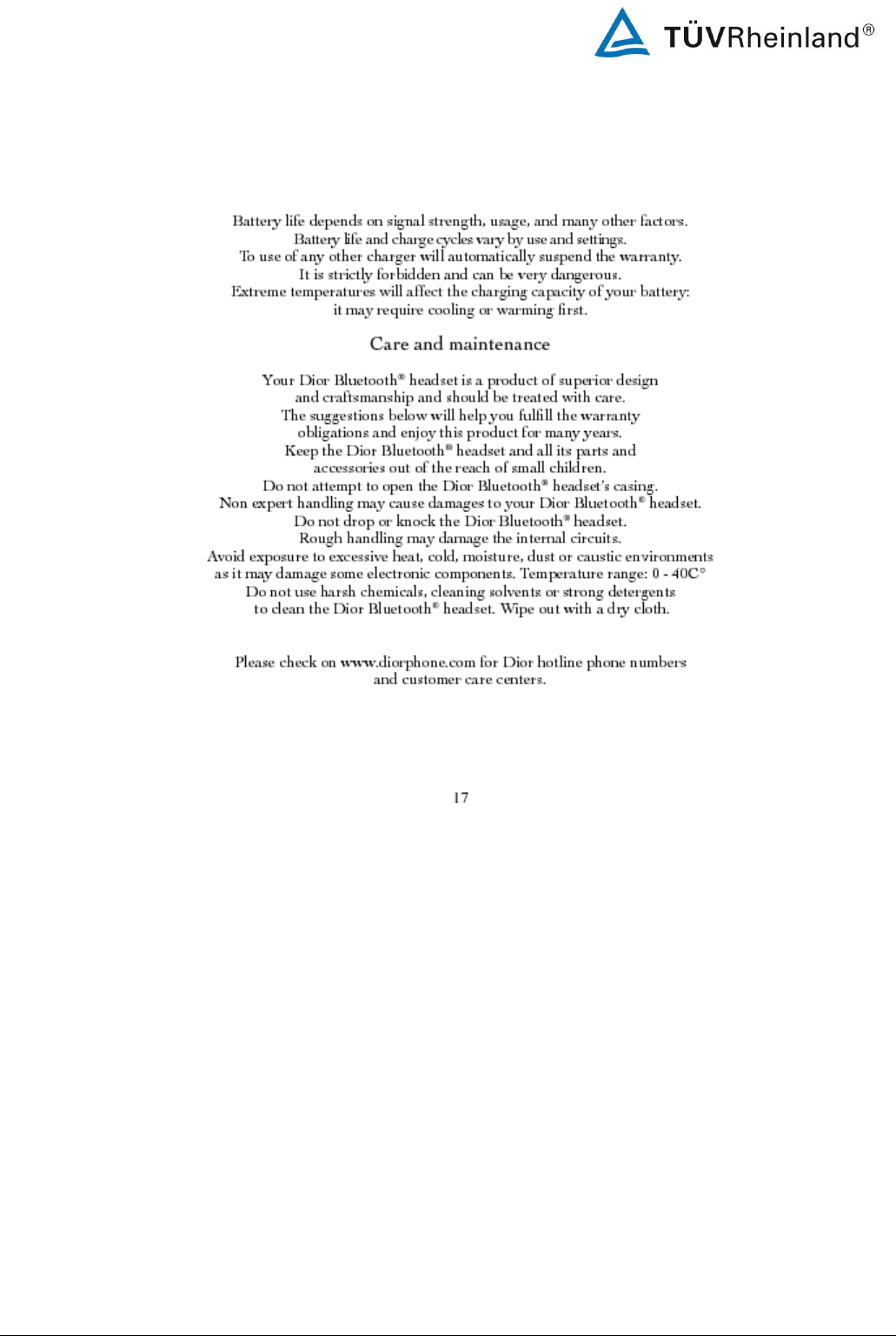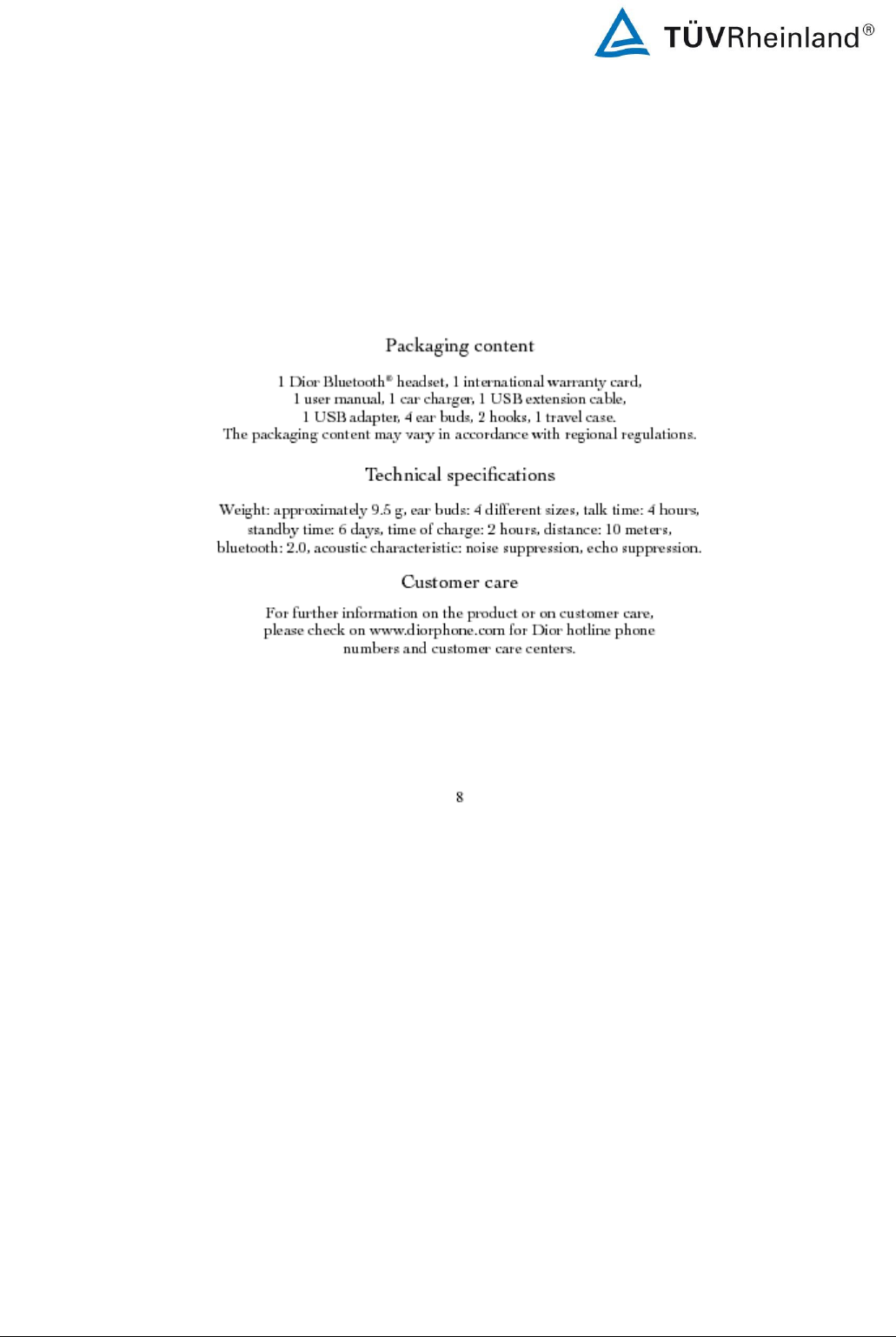 ConnecteDevice Limited Bluetooth EDR Headset Dior Users Manual