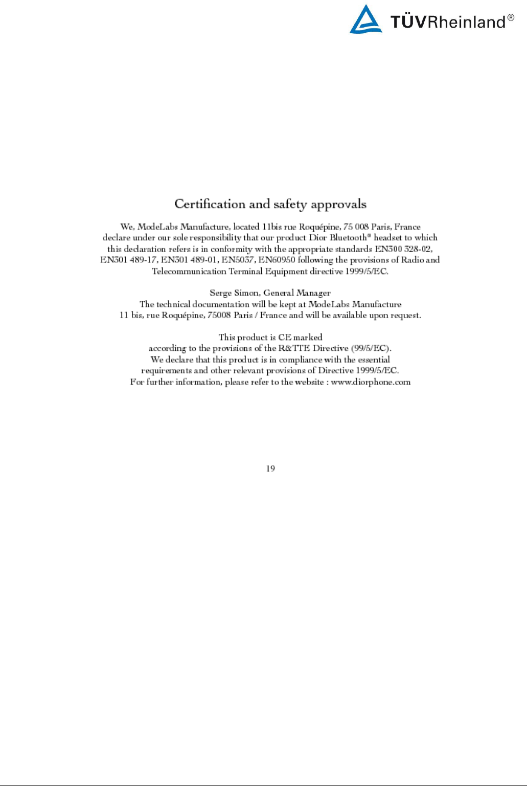 ConnecteDevice 44SAX Bluetooth EDR Headset Dior User Manual