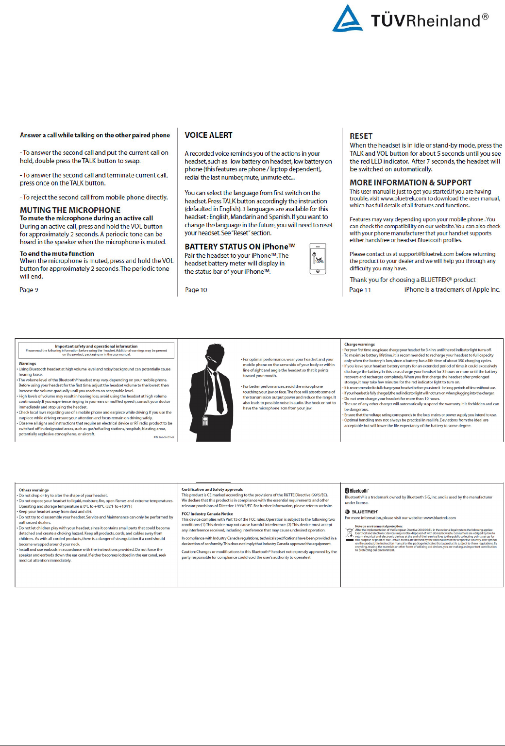 ConnecteDevice B41C Bluetooth Headset User Manual