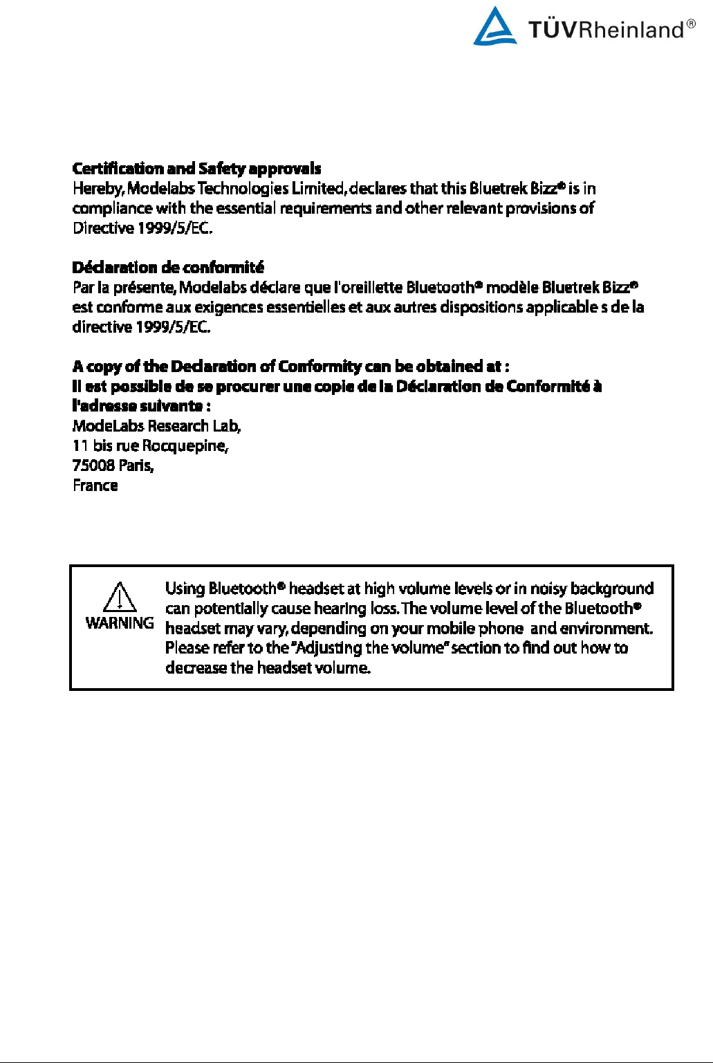 ConnecteDevice BT4F Bluetooth Headset User Manual 14017892 001 Bizz FCC report