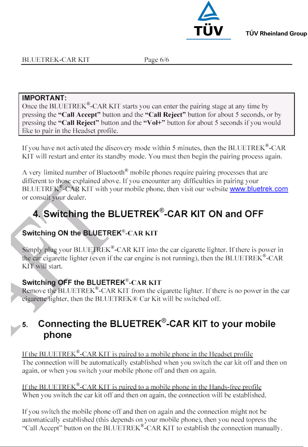 ConnecteDevice Limited Bluetooth Handsfree Car Kit Users Manual