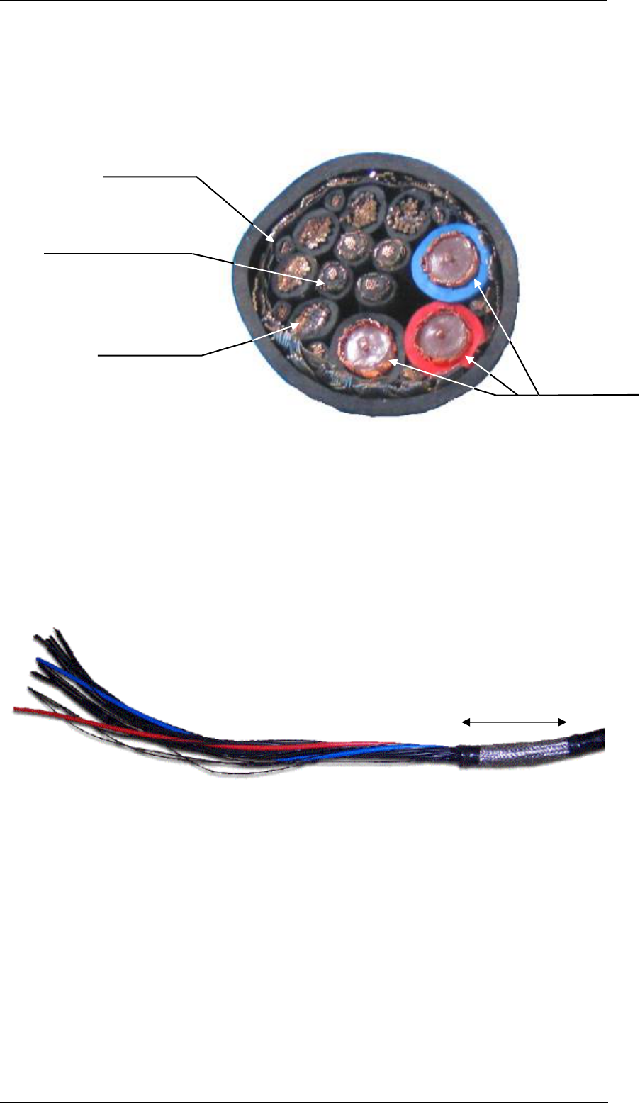 Dismantle the outer isolation of the cable for 70 cm, however in case of 12 or 25