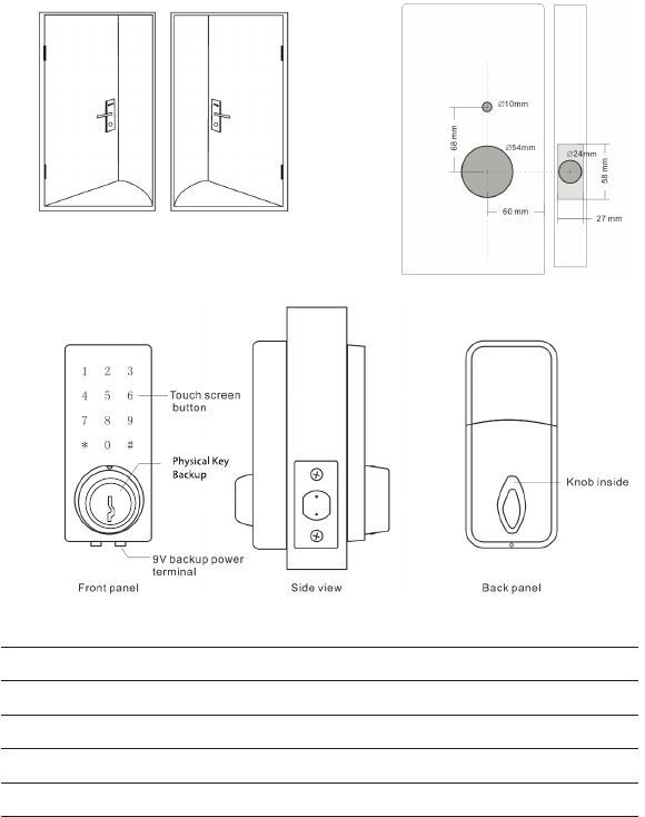 • Door thickness: 1.5”-1.88” inches (38-48mm)