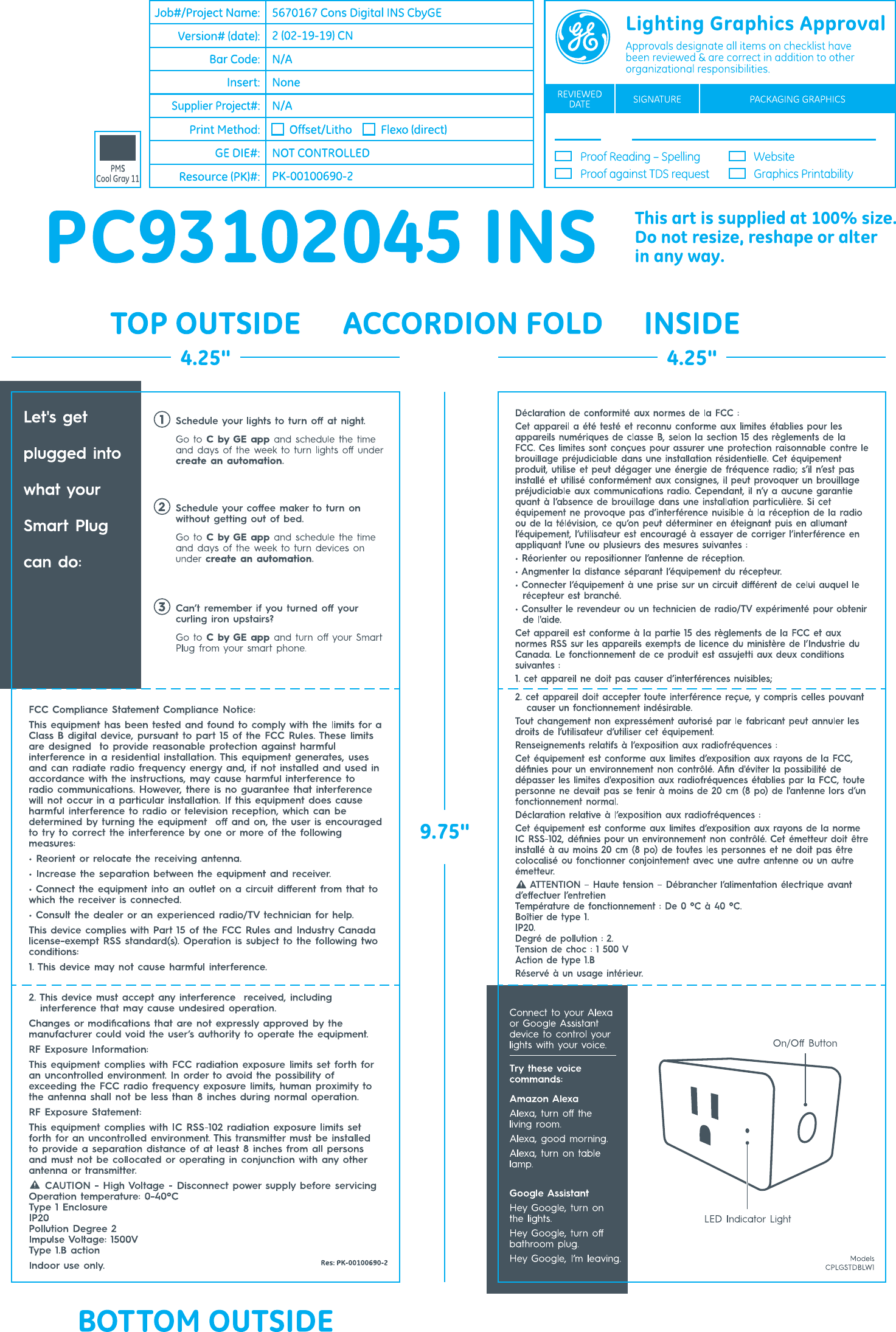 GE Lighting Smart Plug 93102045 PK 00100690 2 INS FNL