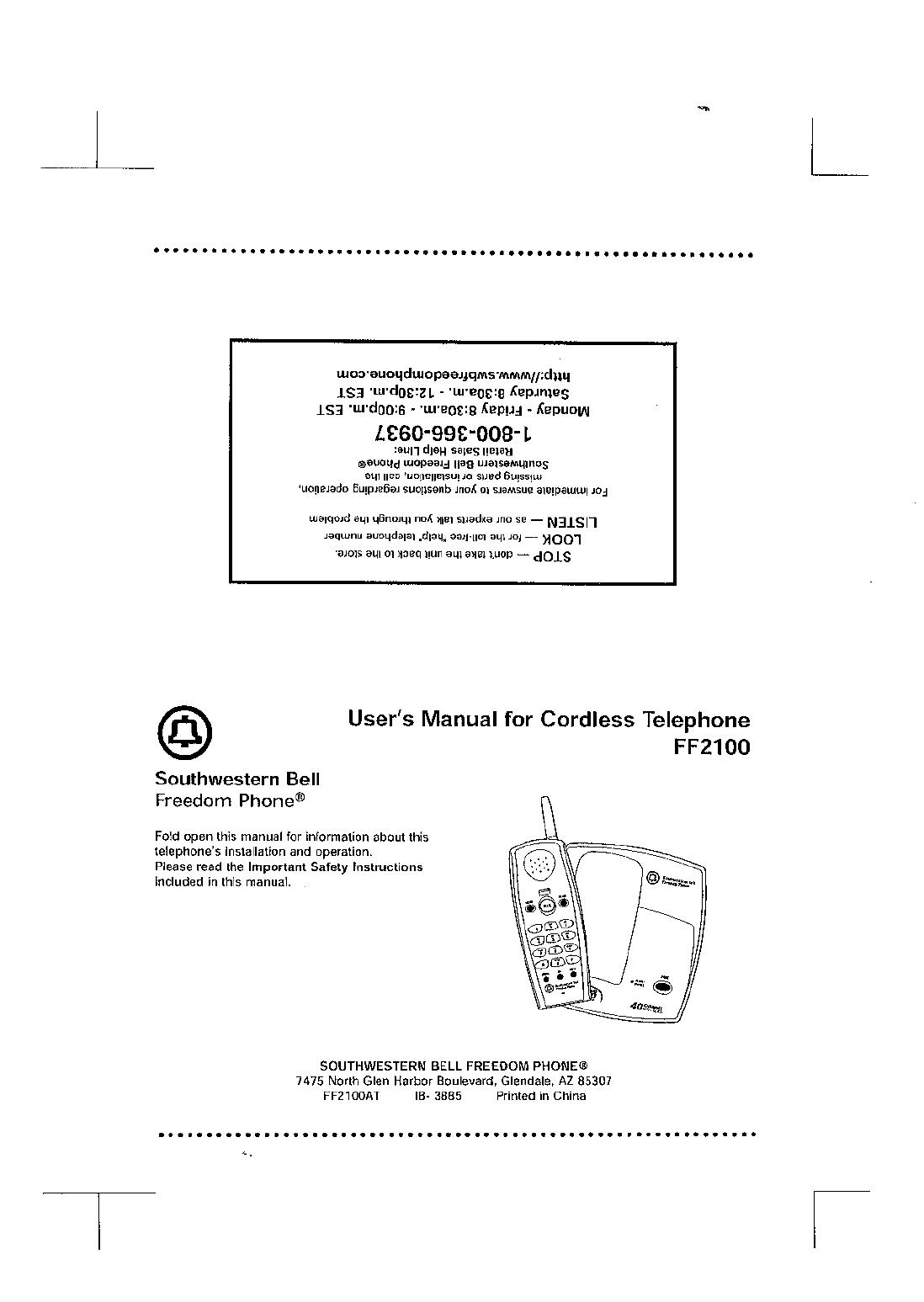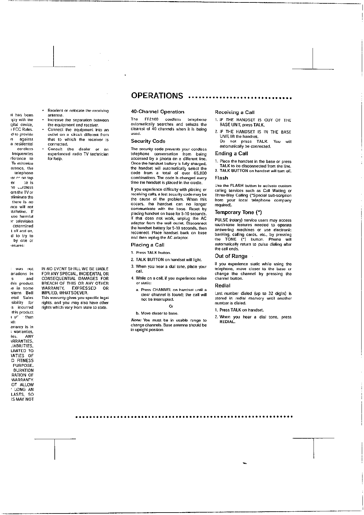 Continental Conair FF2100HT 900MHz 40 Channel Analog Modulation Cordless Phone User Manual