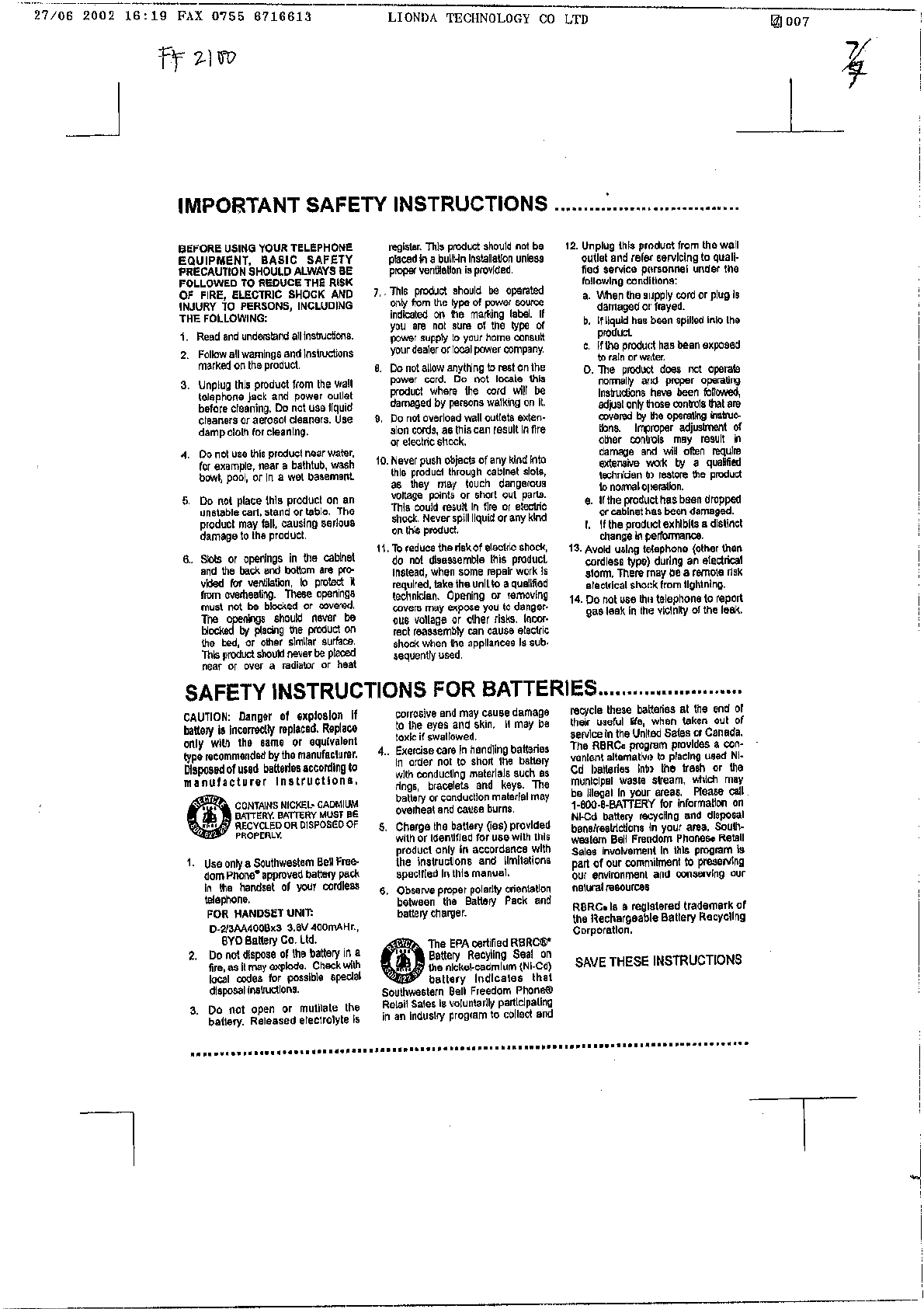 Continental Conair Limited 900MHz 40 Channel Analog Modulation Cordless Phone Users Manual