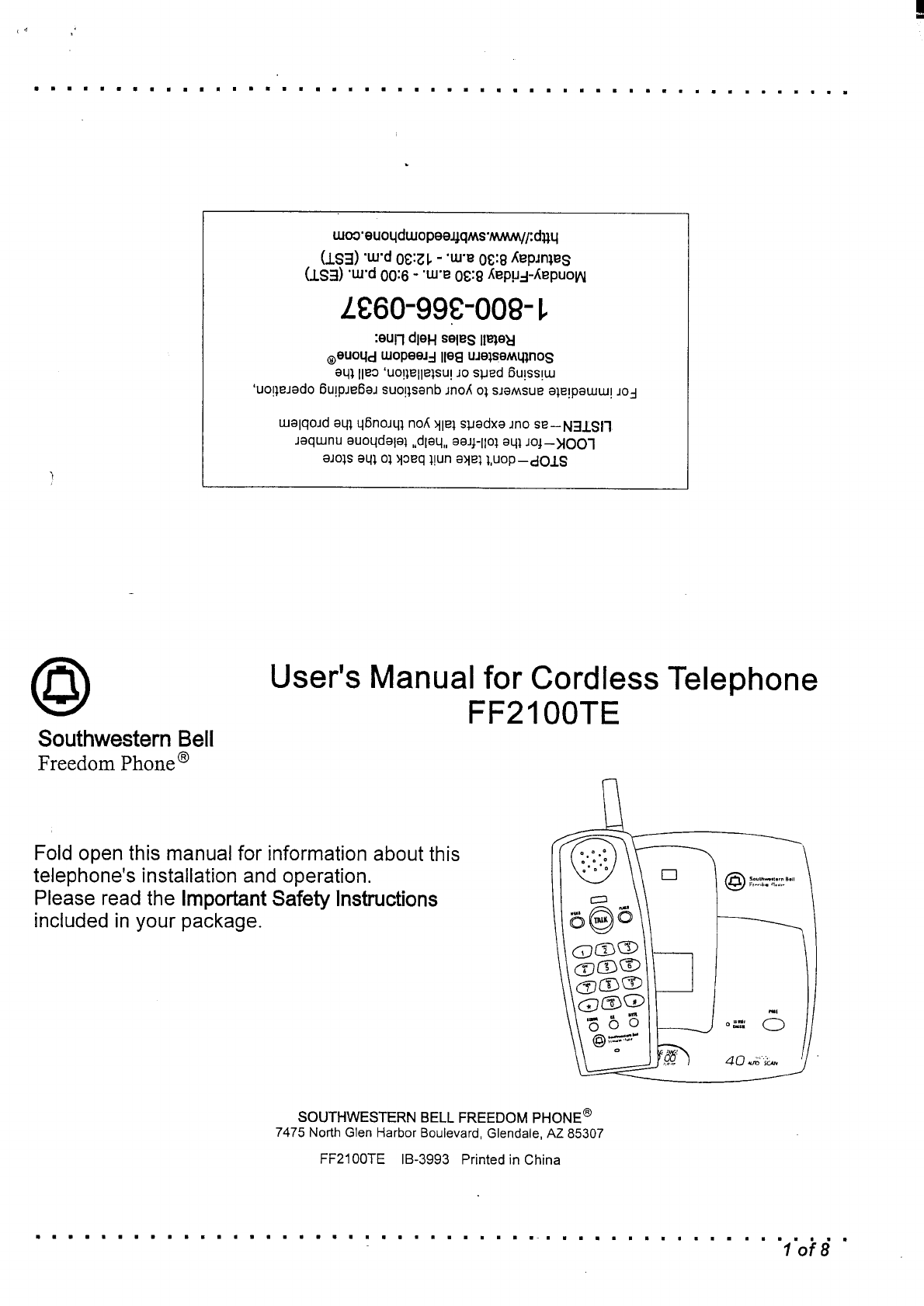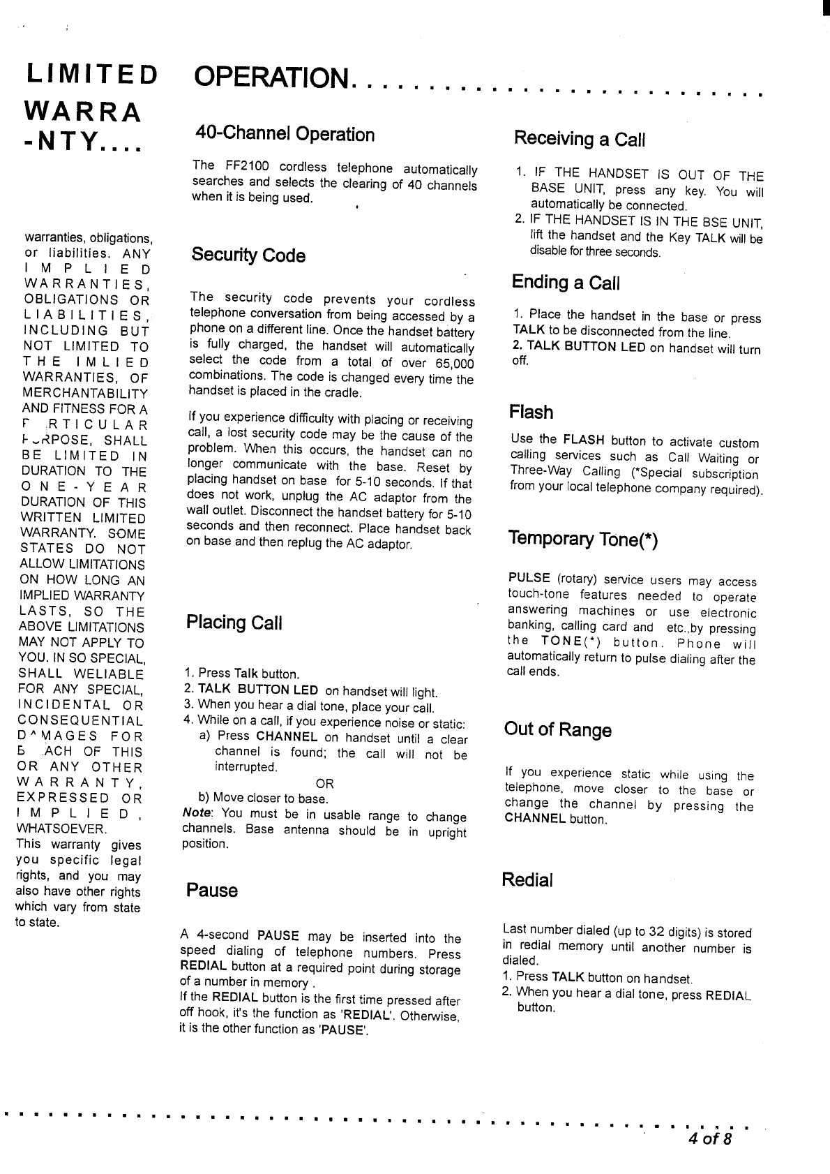 Continental Conair FF2100TE 900 MHz 40 Channel Analog Modulation Cordless User Manual