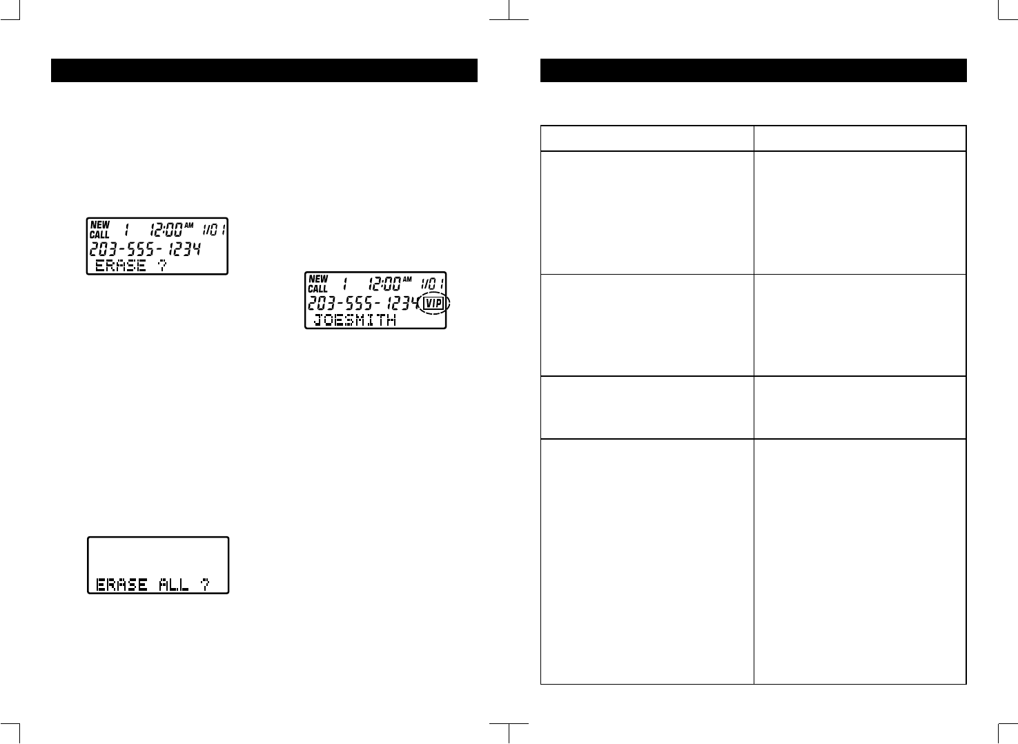 CALLER ID, CID BLOCKED, ERROR, a