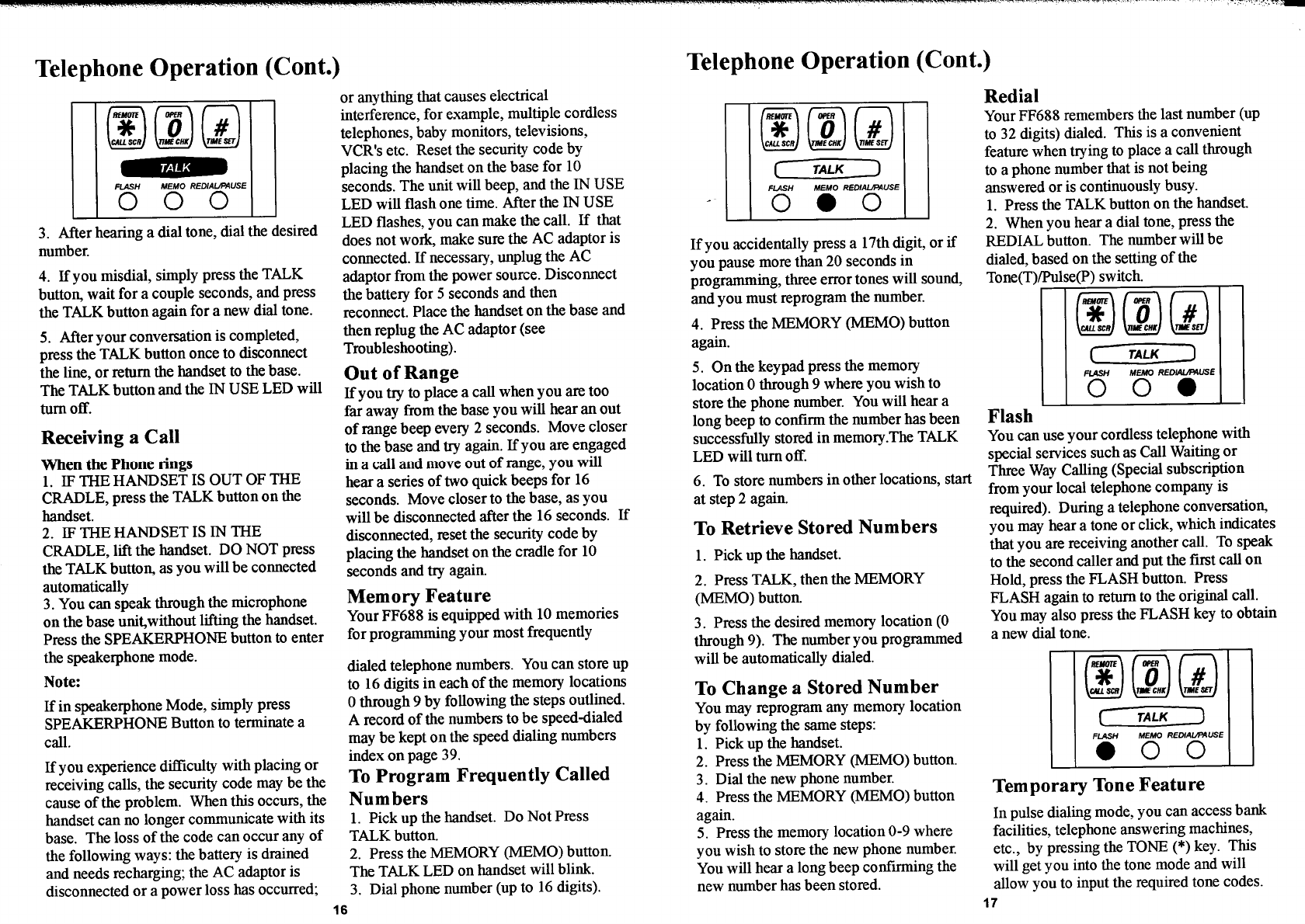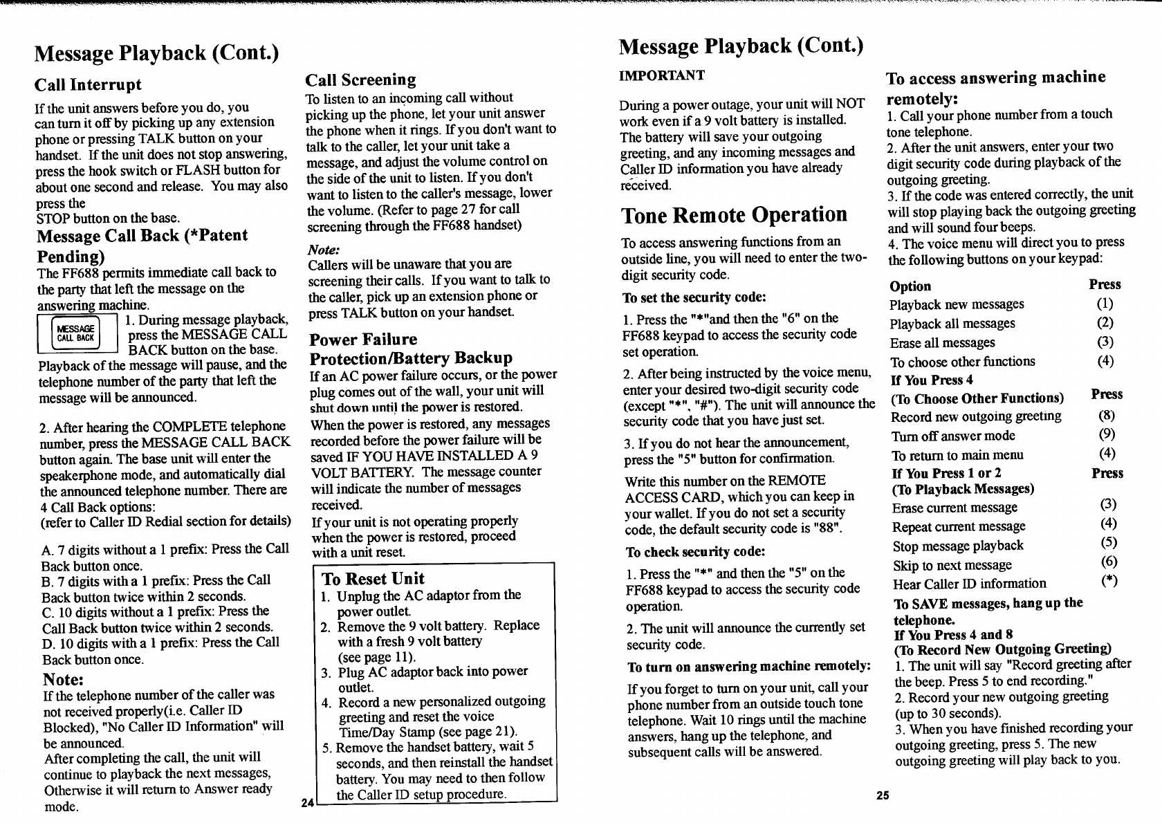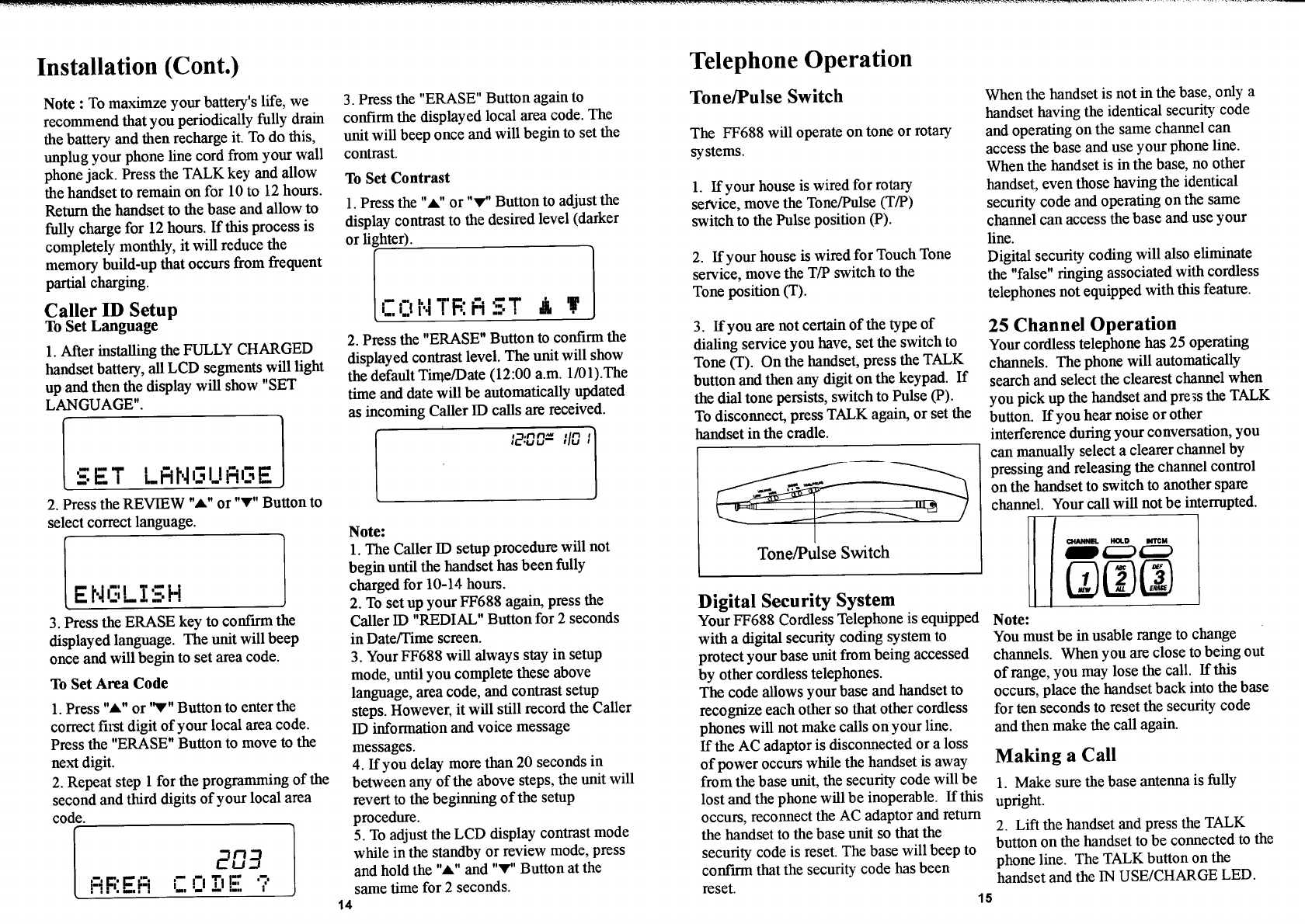 Continental Conair FF688 25 Channel Cordless Phone User Manual