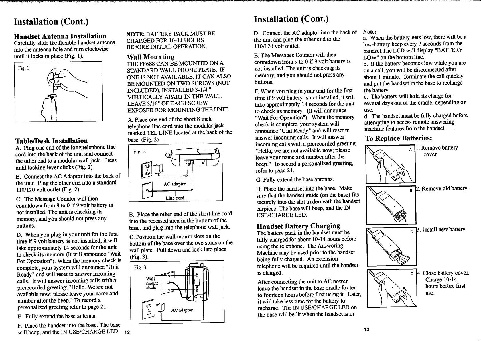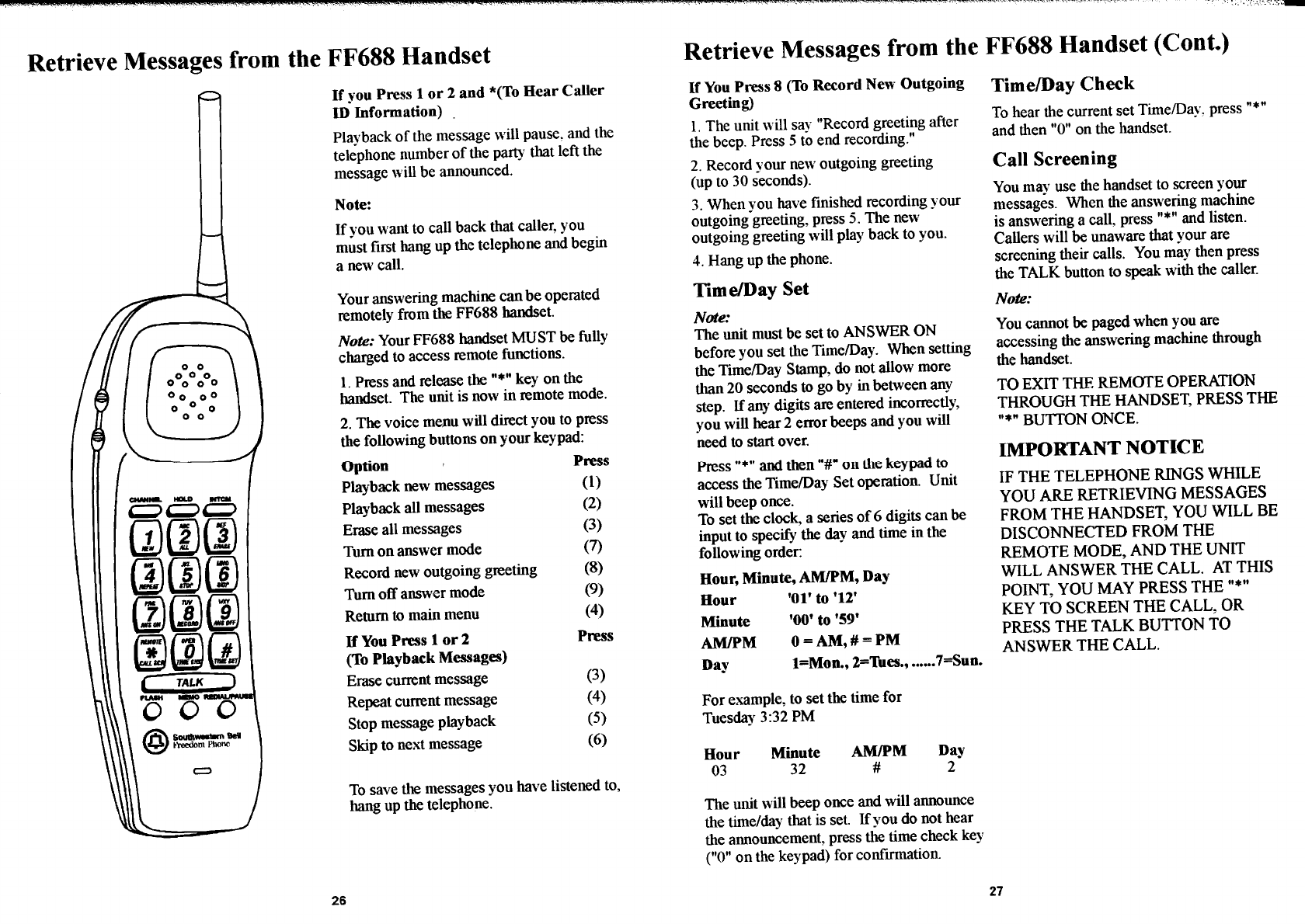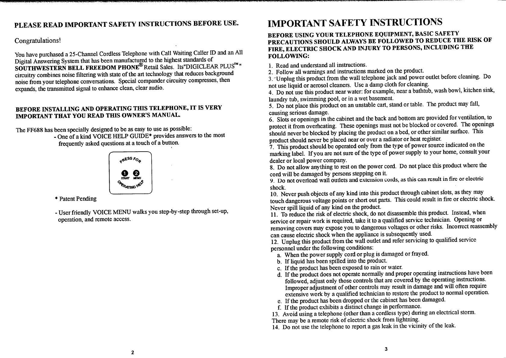 Continental Conair FF688 25 Channel Cordless Phone User Manual