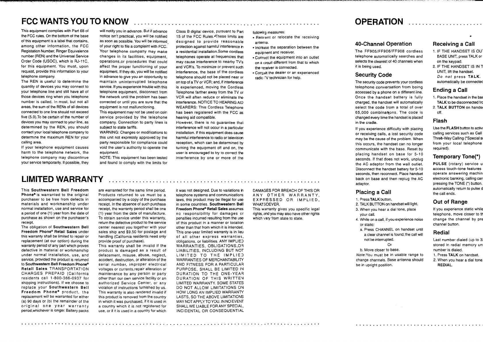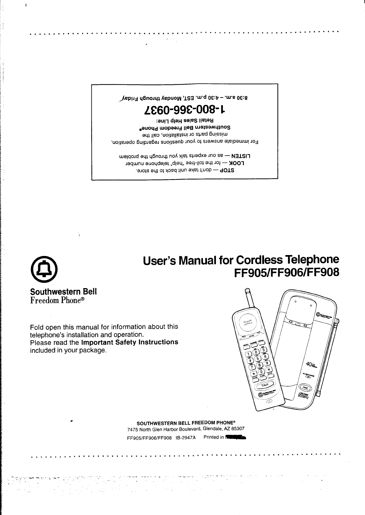 Continental Conair FF905ATA 900MHz Cordless Telephone User Manual