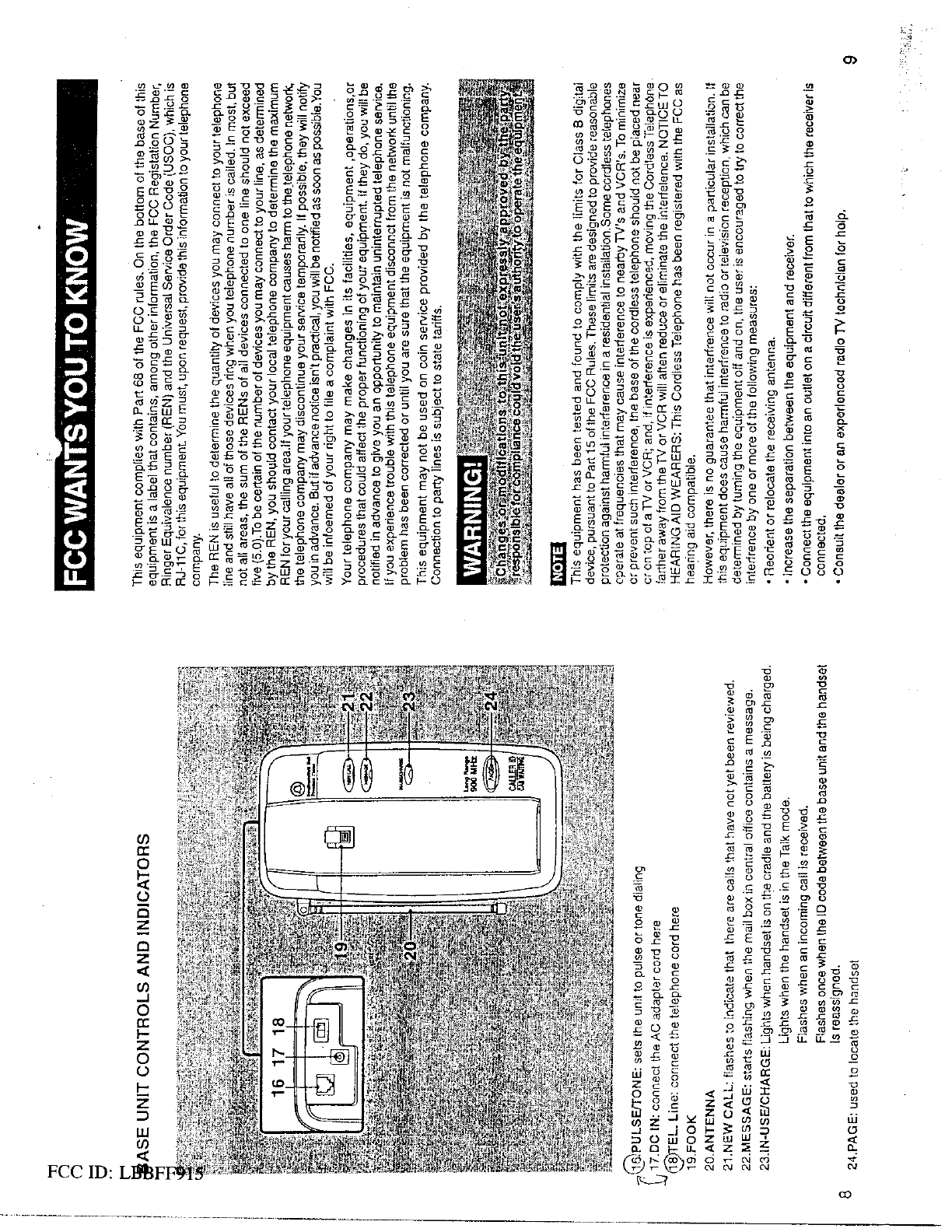 Continental Conair FF915 Cordless Telephone User Manual 8