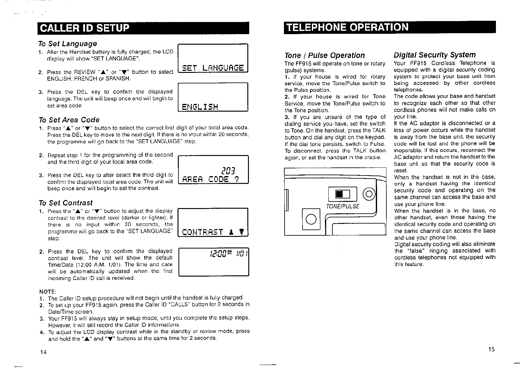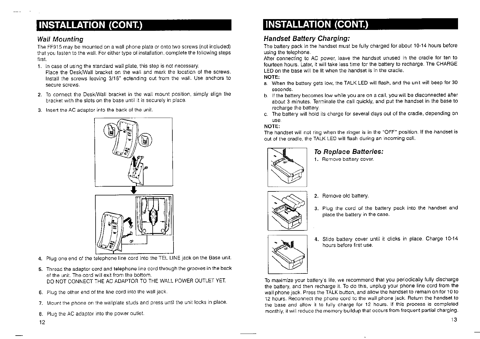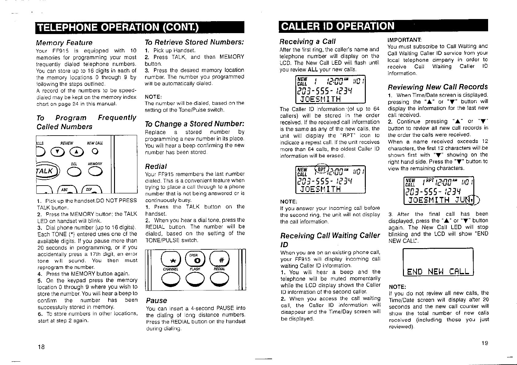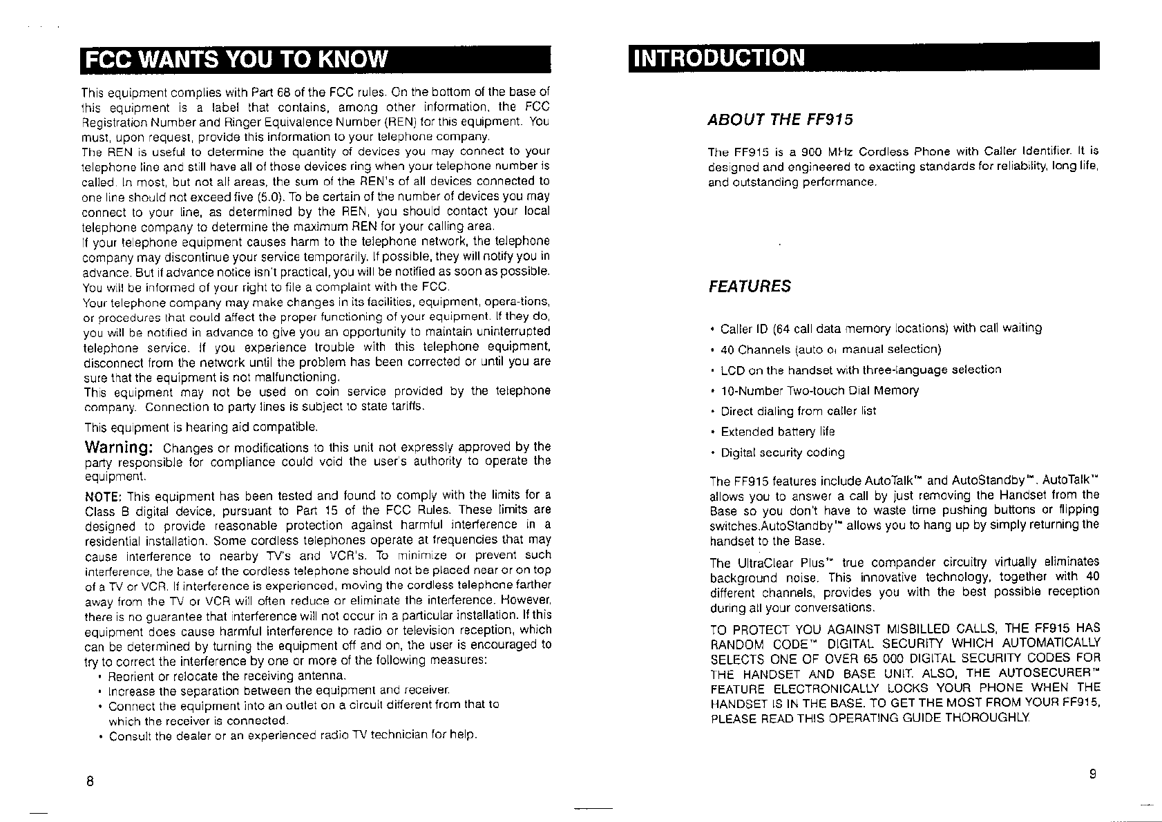Continental Conair FF915AT 900MHz Cordless Telephone User Manual