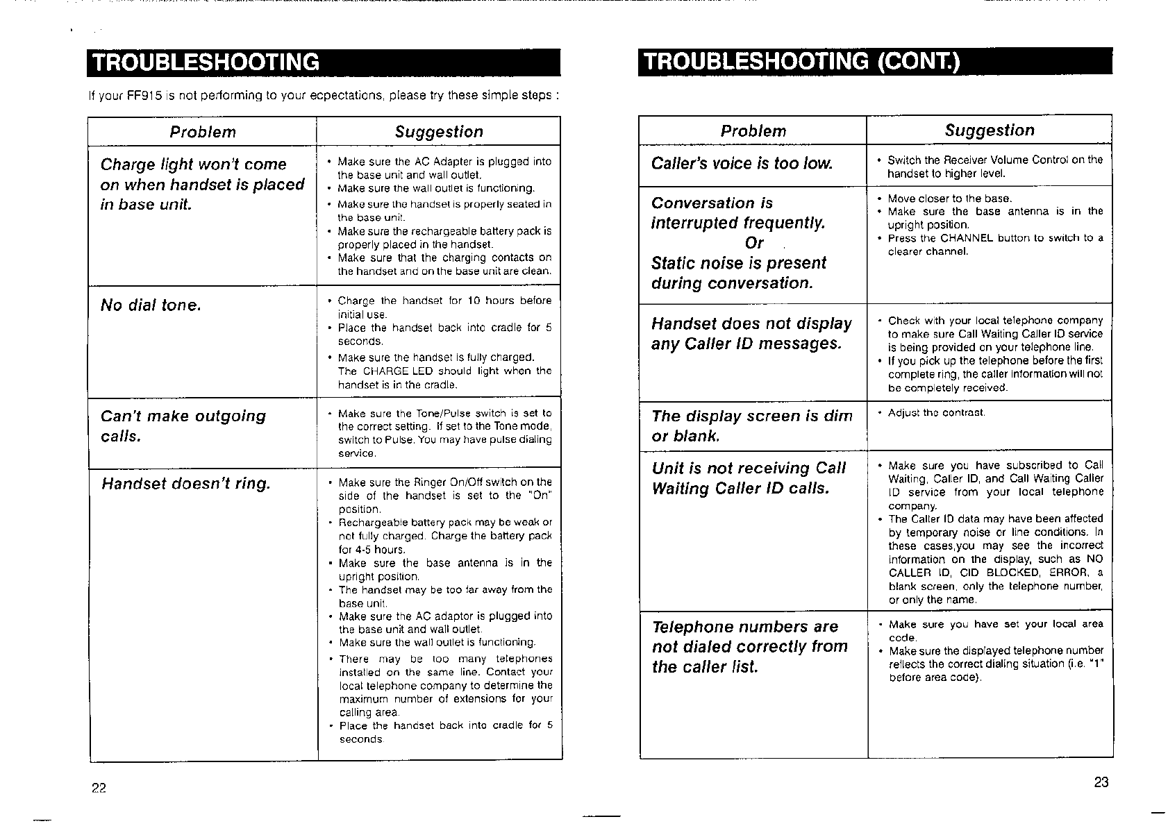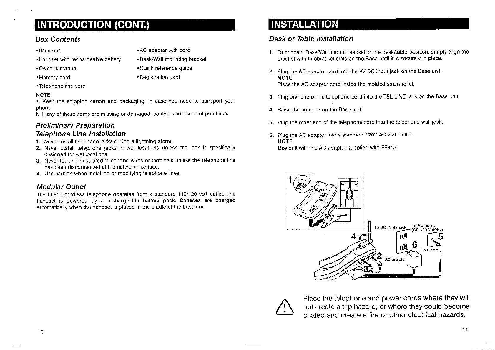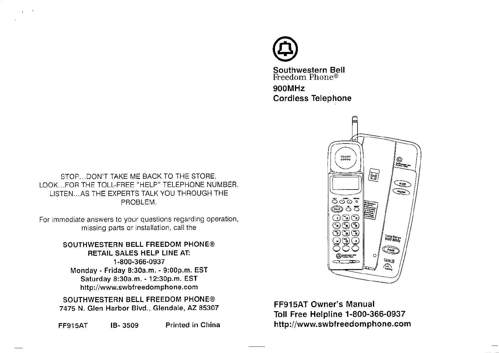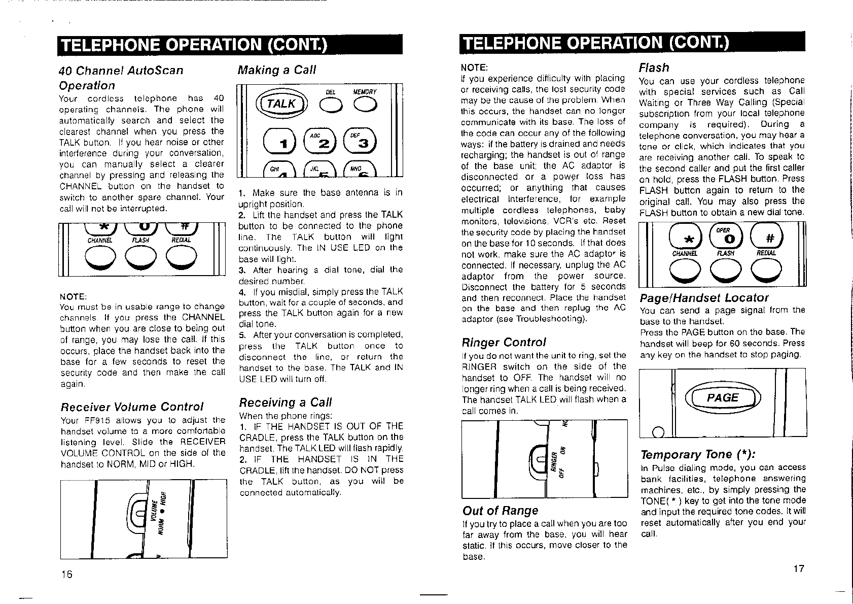 Continental Conair FF915AT 900MHz Cordless Telephone User Manual